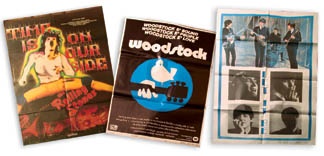 Assortment of 12 spectacular large Italian made film posters featuring the Beatles (A Hard Day's Night, Let It Be), The Rolling Stones (Time is On Our Side), Led Zeppelin ( Song Remains the Same), David Bowie (Ziggy Stardust, Gigolo), the Who (Quadrophenia) as well as Paul McCartney Wings, Woodstock, James Dean and the Sex Pistols. A wonderful pre-made collection to start or add to your rock movie collection. All are factory folded and in Excellent shape.