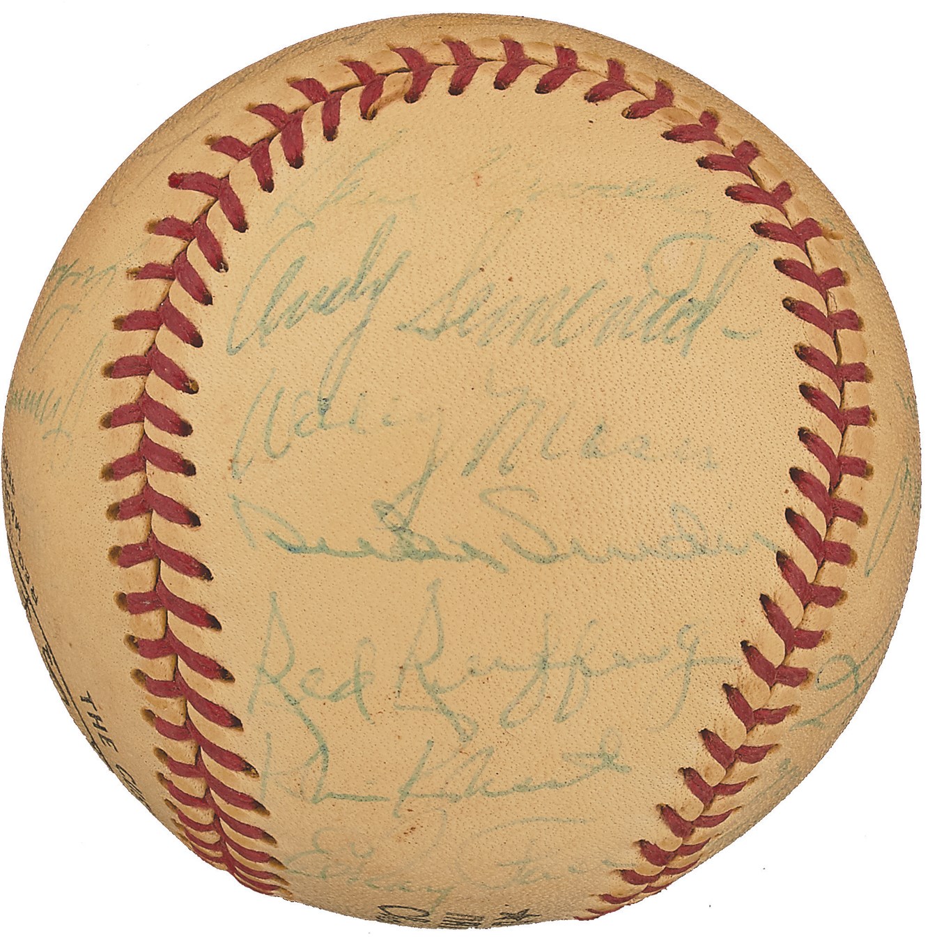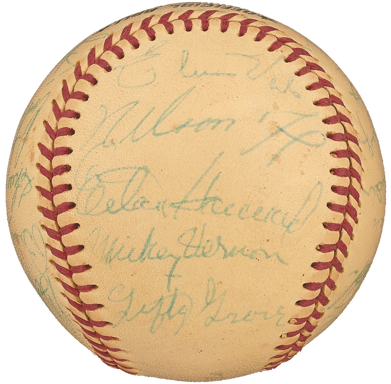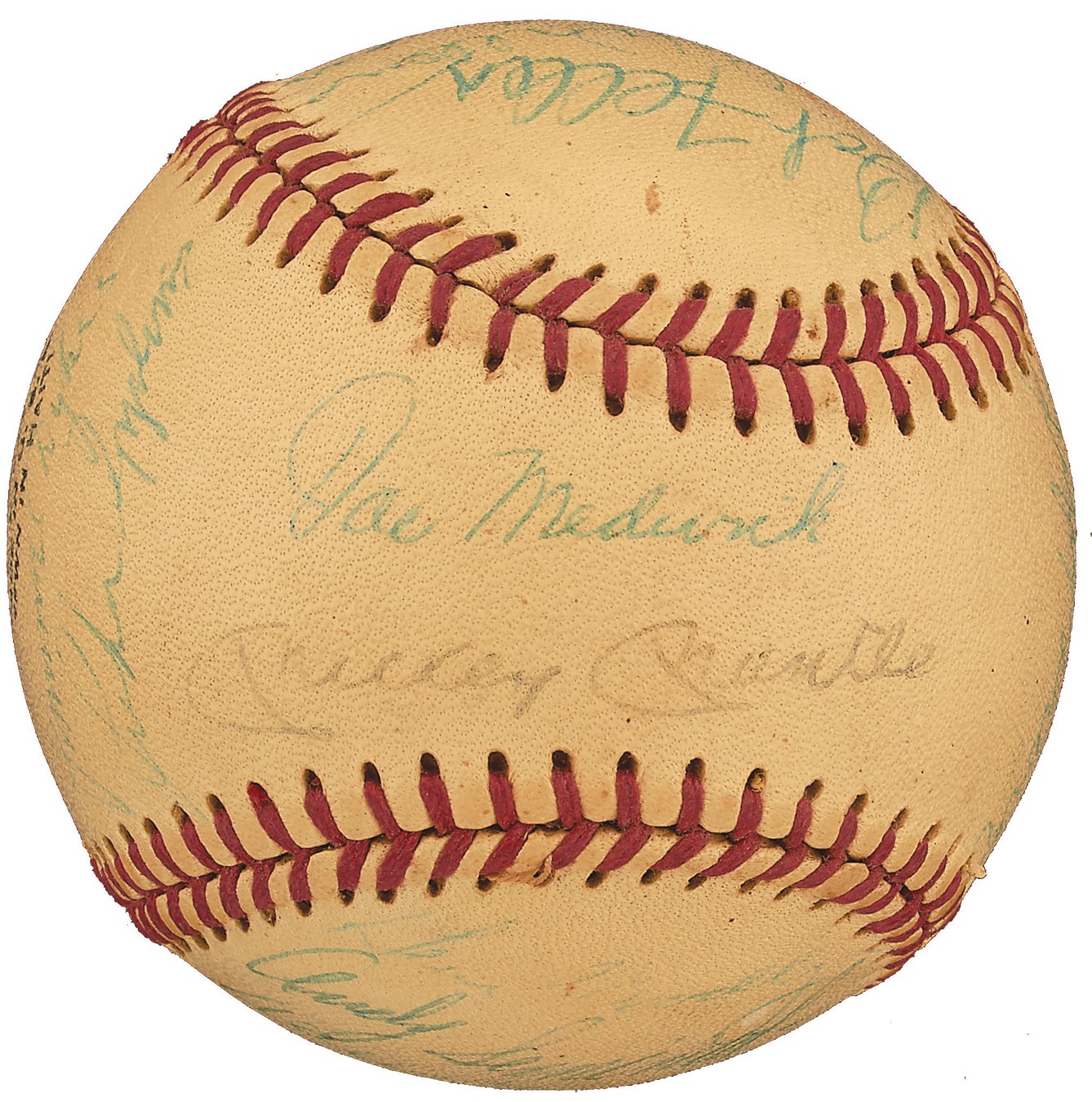 Lot # 321: Circa 1974 Hall of Famers Signed Baseball with Mantle and Medwick