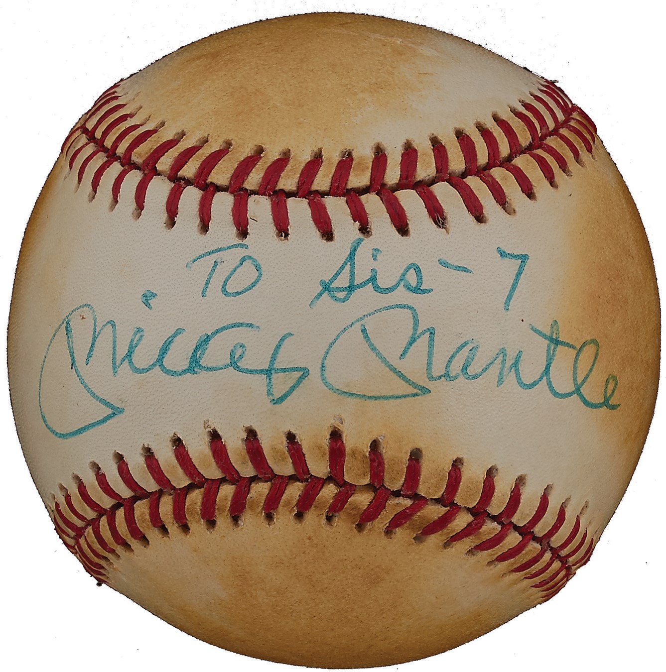 Lot # 319: Mickey Mantle Signed Baseball to His Sister (JSA LOA)