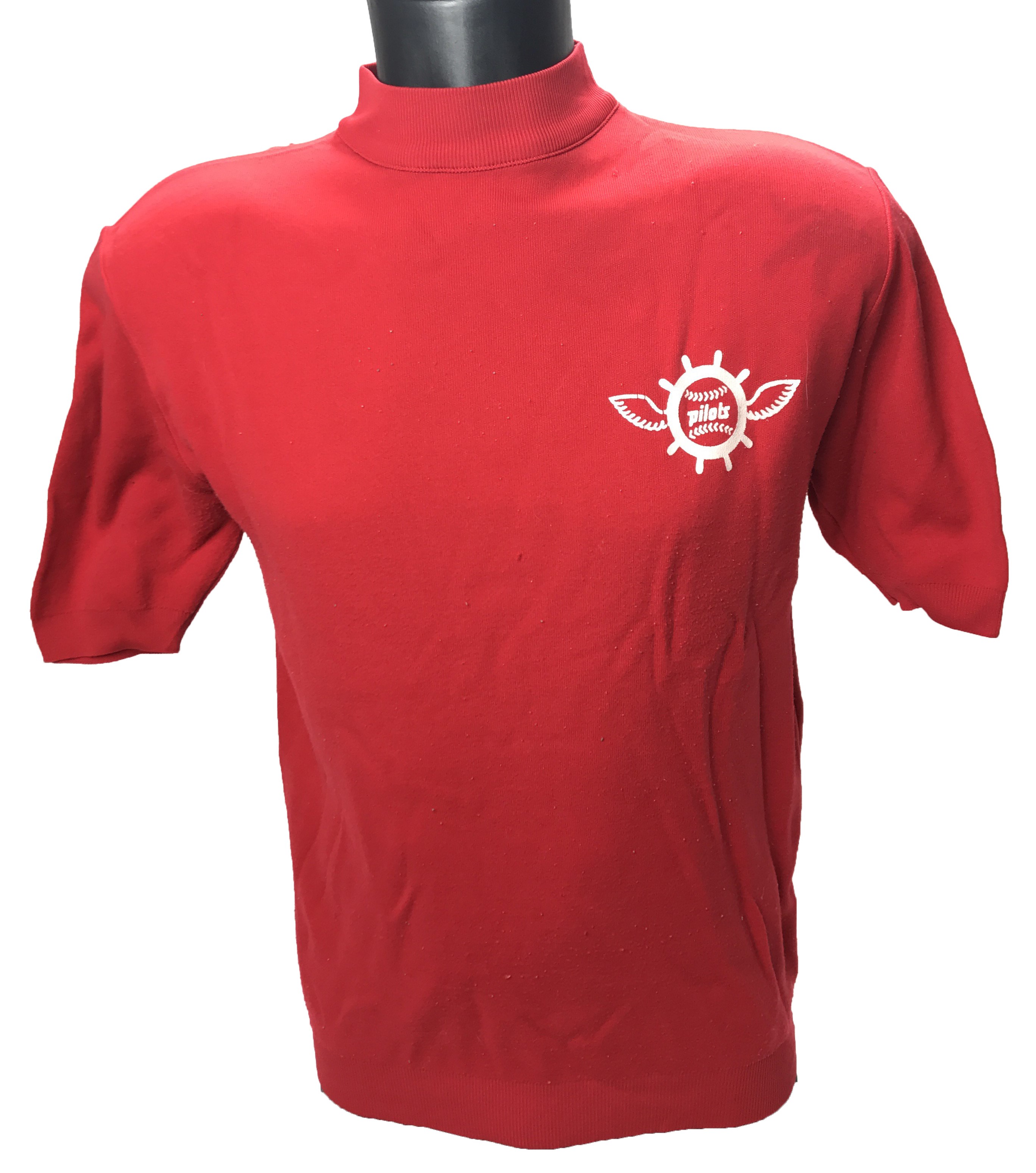 Offered here is a nice selection of keepsakes dating from the lone season of baseball's Seattle Pilots. Originating from former team executive Lewis Matlin, 19 items are available including: 1-4) Uniform shoulder patches of team logo measuring 5", all game ready and unused (4). 5) Embroidered Pilots logo patch, 4.5". 6) Major League Baseball logo 100th Anniversary patch, 3.5x2.5". 7-8) Decals, 5x3" (2). 9-14) Bumper stickers (6). 15-19) Decals from the Clinton Pilots, Seattle's Class A affiliate for the 1969 season. 20) Rare red turtleneck with Pilots logo for cold Seattle weather. NRMT.