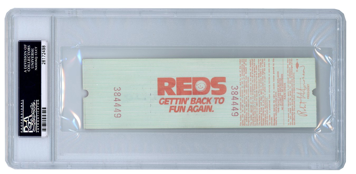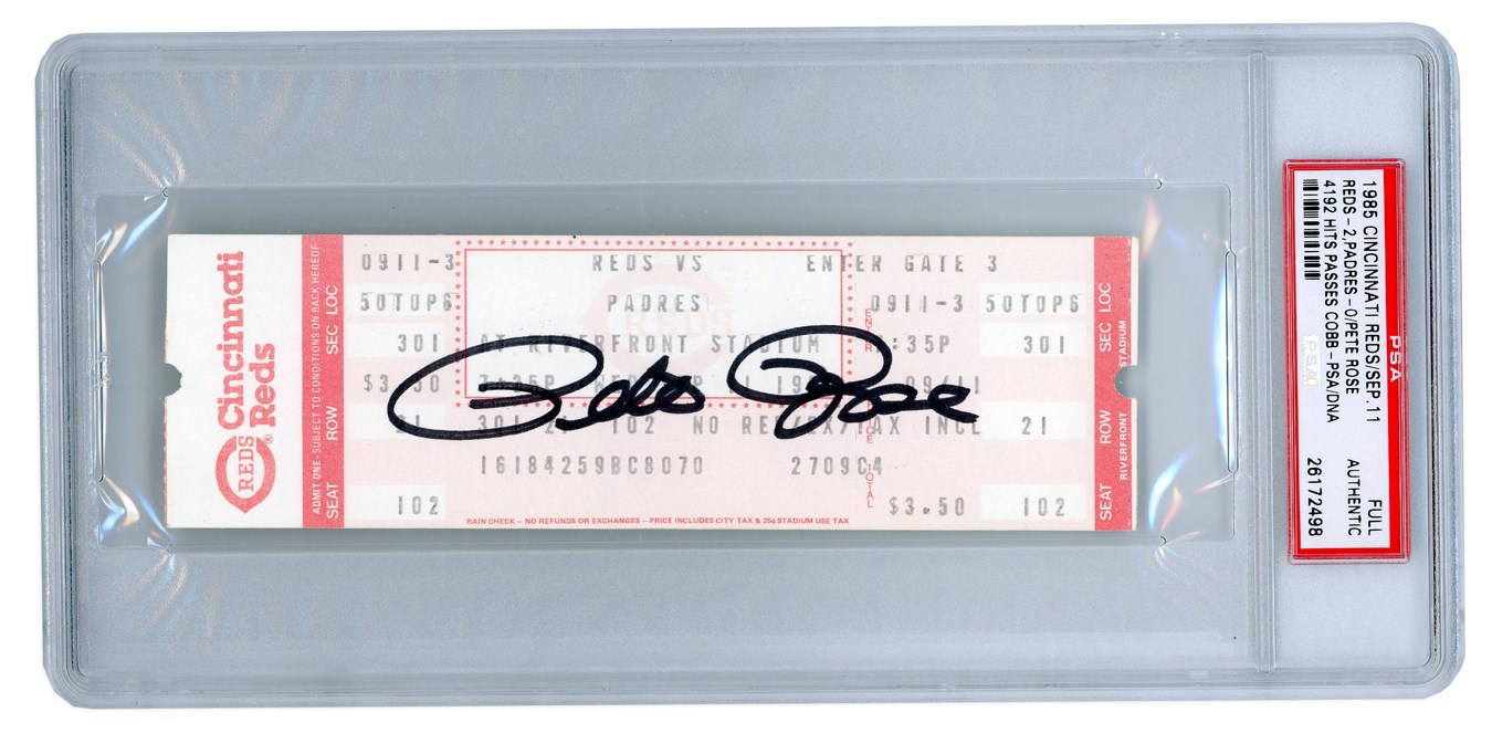This ticket is from the legendary game when Pete Rose passed Ty Cobb as the all-time hits leader. Full ticket is slabbed by PSA "Authentic" but appearance is EX+ overall.
