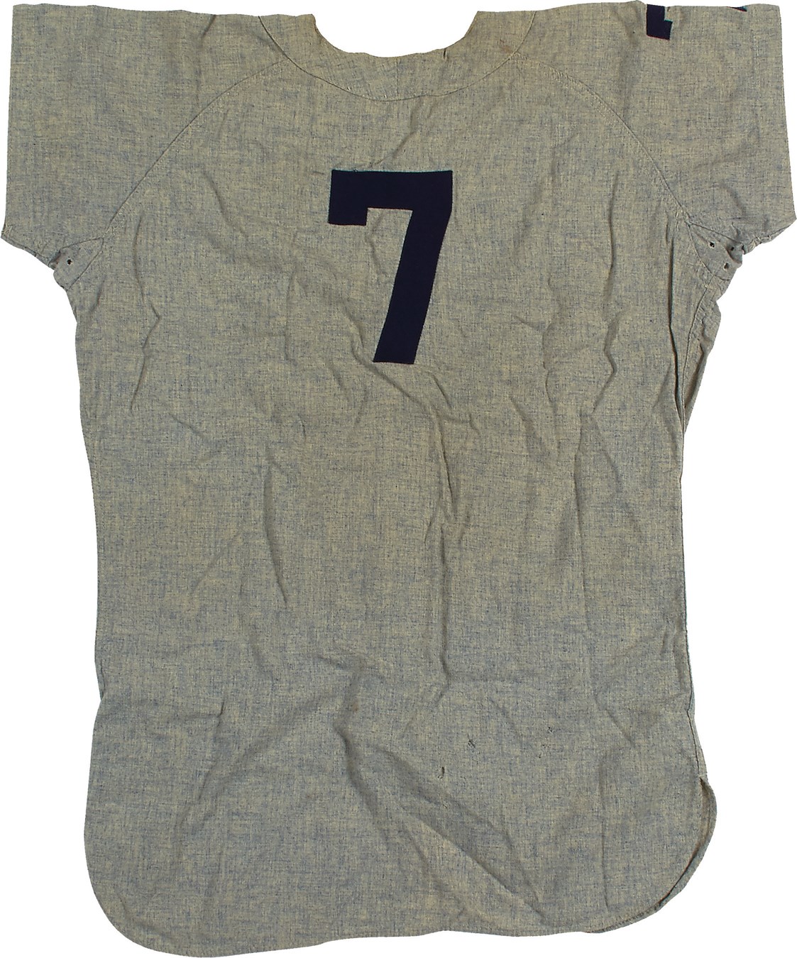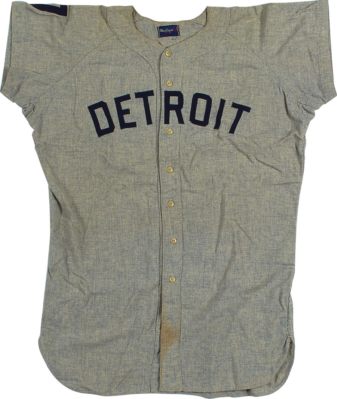 From the year he won the American League batting title, this vintage Harvey Kuenn road uniform from his last season with the Detroit Tigers is all-original and features matching jersey and pants. The versatile shortstop and outfielder crafted a solid, 15-year playing career that saw him compile a .303 lifetime batting average. The jersey features "DETROIT" across the front in deep navy felt, "7" in the same felt on the back and right sleeve, MacGregor Size 44 tag in the collar and Set 2 1959 flag tag inside the front tail. The matching pants have Size 36 MacGregor tagging in the waist band with Set 2 1959 flag tag. Both the jersey and pants show nice use with minimal staining and a few small holes at the tail area of the jersey. After his retirement in 1966, Kuenn coached and managed in the big leagues, most notably with the Milwaukee Brewers, leading the Brew Crew to the 1982 American League pennant.