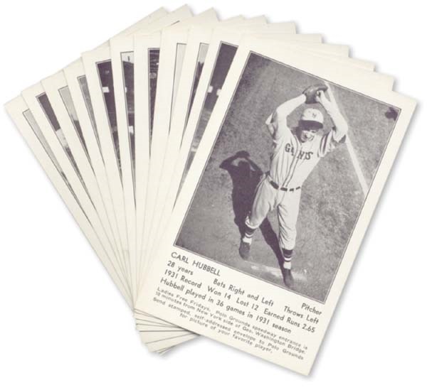 We guarantee that these weren’t printed yesterday, but we can understand why you would think otherwise. Each and every one of these cards is absolutely untouched by the hands of time, resulting in a collection of postcards that is as perfect today as it was seven decades ago. All the stars are here too: Hubbell, Ott, Jackson, Terry, etc. Faces of cards feature photographic images and stats; backs have season schedule and spot for correspondence.