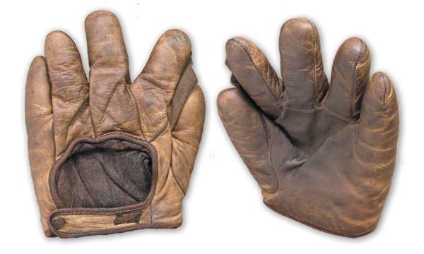 Fine button-back mitt dates from the days of Cobb and Shoeless Joe, showing certain use but not so much as to damage. Nice webbing between thumb and index finger. "D&M" tag on wrist band is worn but legible and instantly recognizable.