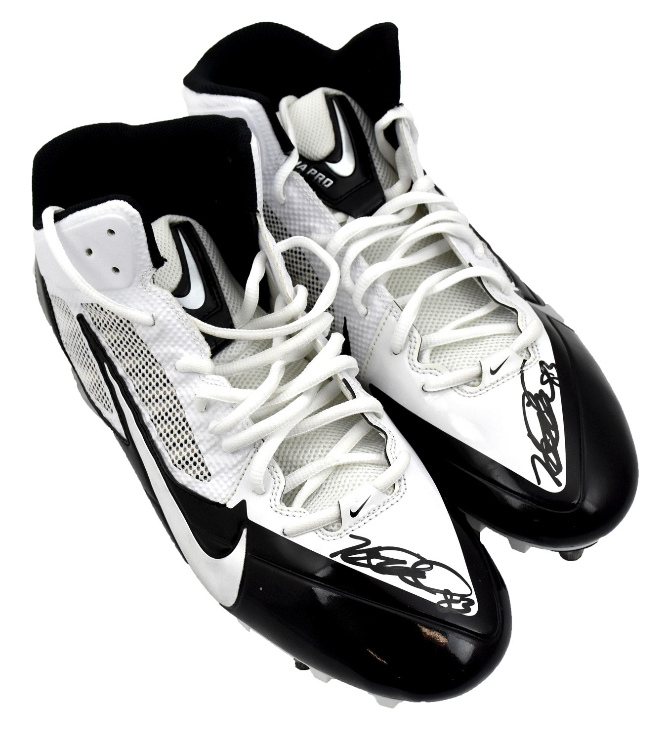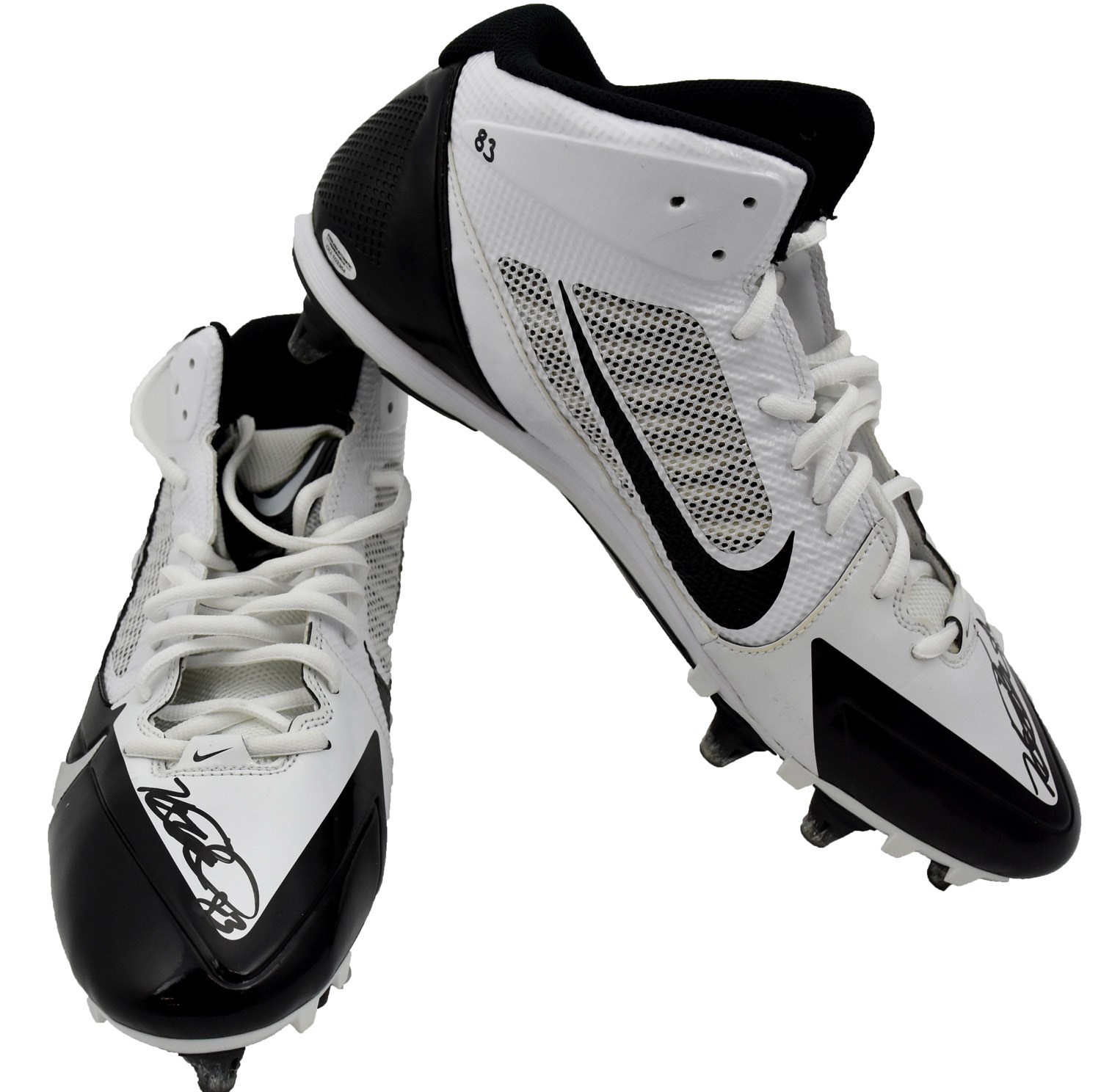These pristine white and black Nike Alpha Pro cleats were game worn and signed by Steelers tight end Heath Miller during his final season with Steel City. Miller was a two-time Super Bowl champ with Pittsburgh and was also selected to the Pro Bowl twice, once in 2009 and again in 2012. The size 13.5 cleats were each signed by Miller at the base of the laces and his number "83" appears written in black marker near the top of the heel. Cleats come directly from the Steelers archives and come with an LOA from the the Steelers.