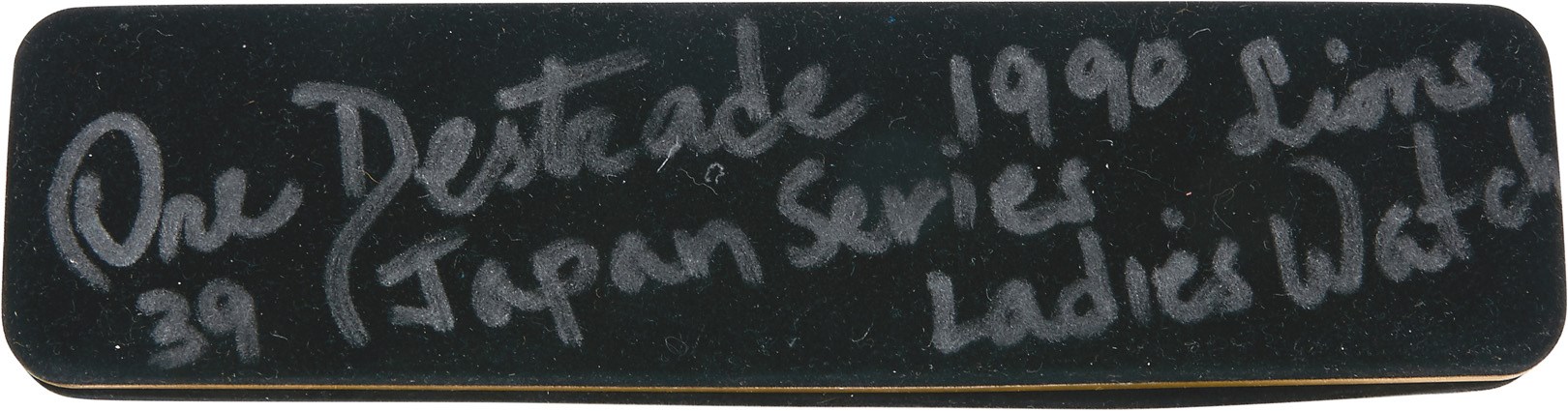 Presented to the wife of player Orestes Destrade in 1990. Signed on case "Orestes Destrade 1990 Japan Series Lions Ladies watch." NM condition and comes with player's LOA.