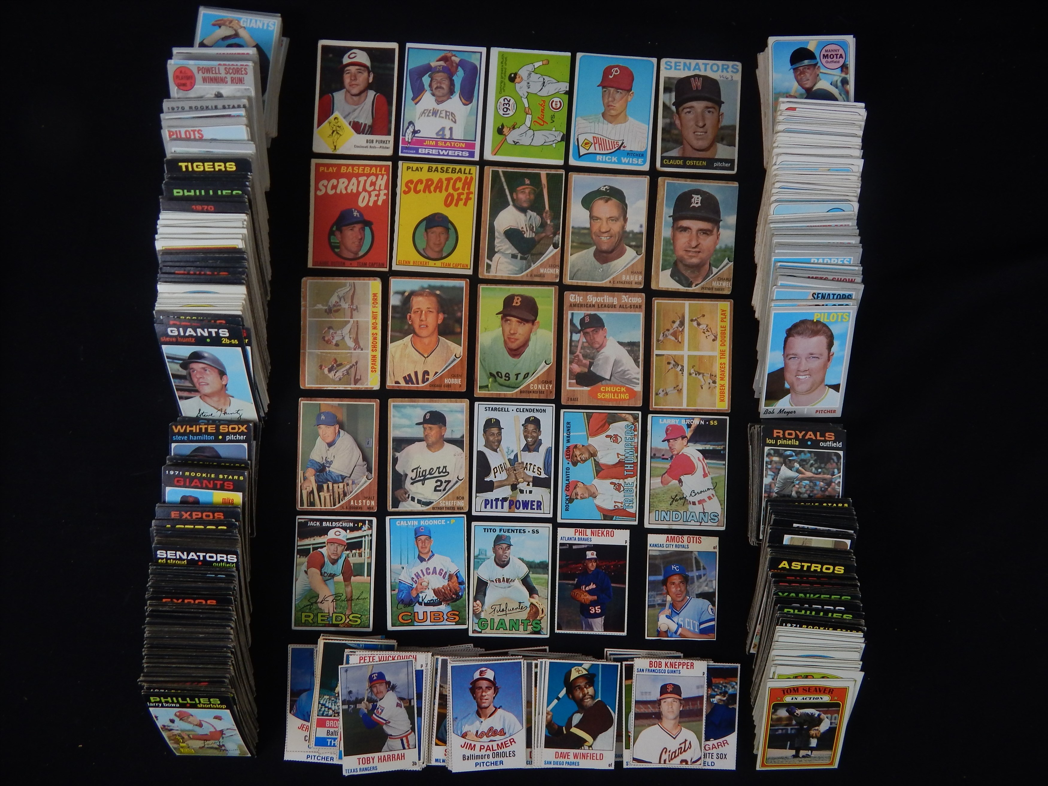 Includes: TOPPS - 1969 (mostly lower grade): 100 cards. 1970: 135 cards. 1971: 375 cards with some "minor" HOFers. 1972: 155 cards. Hostess - about 120 single cards from late 70s...with stars.