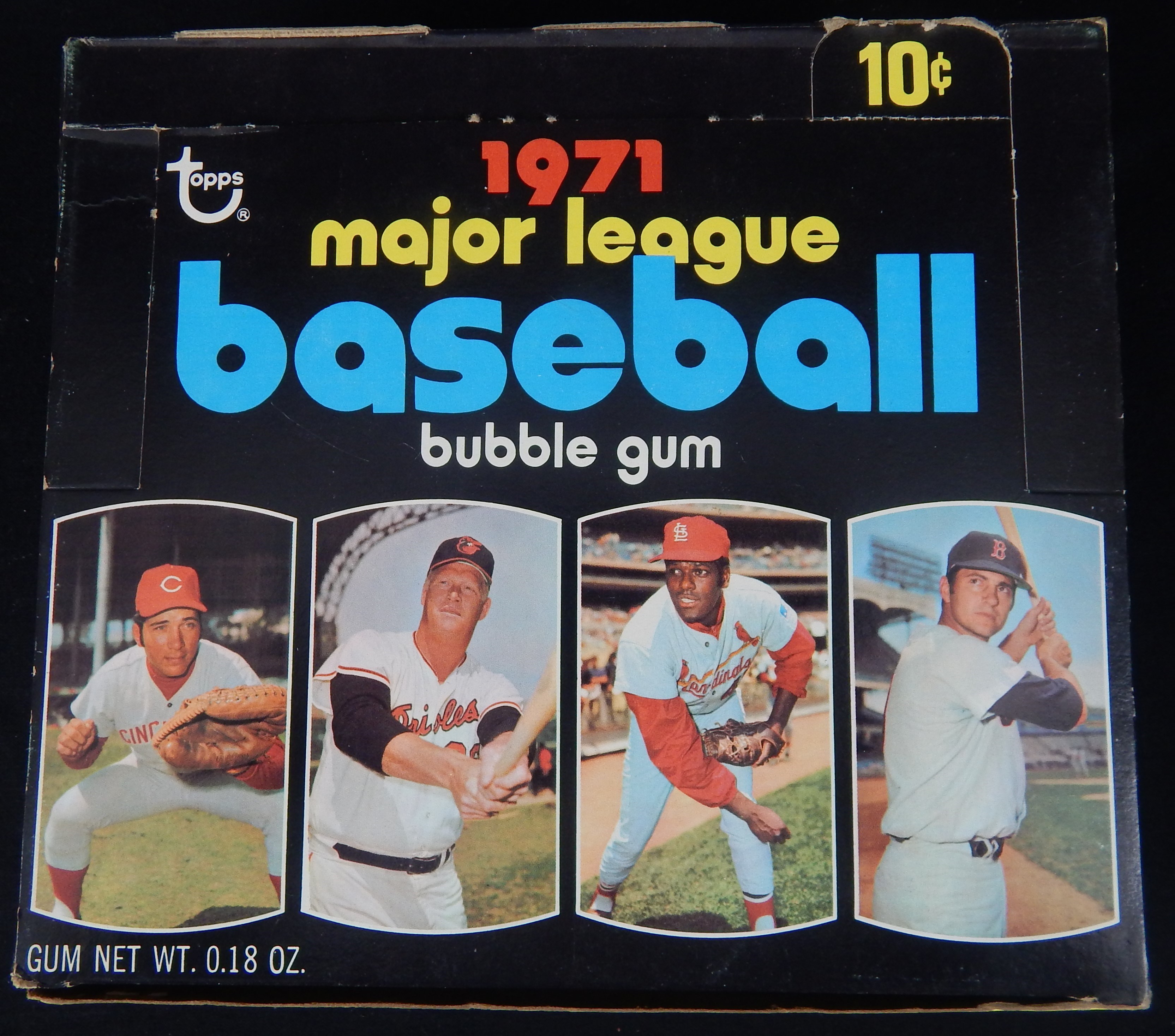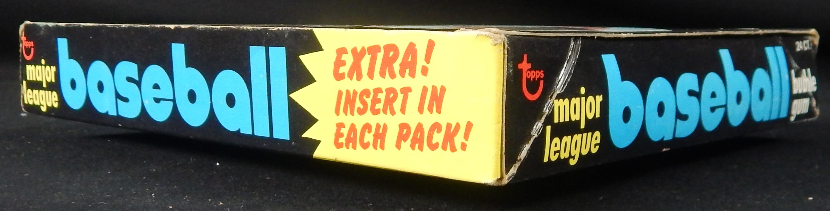 This Topps display box is the 4th in the series and features Pete rose as the highlight for the baseball coin inserts that were provided in each pack. Nice little standup diecut coin image on the front! The left side of the top is still perforated, the rest of it has been "punched" though.