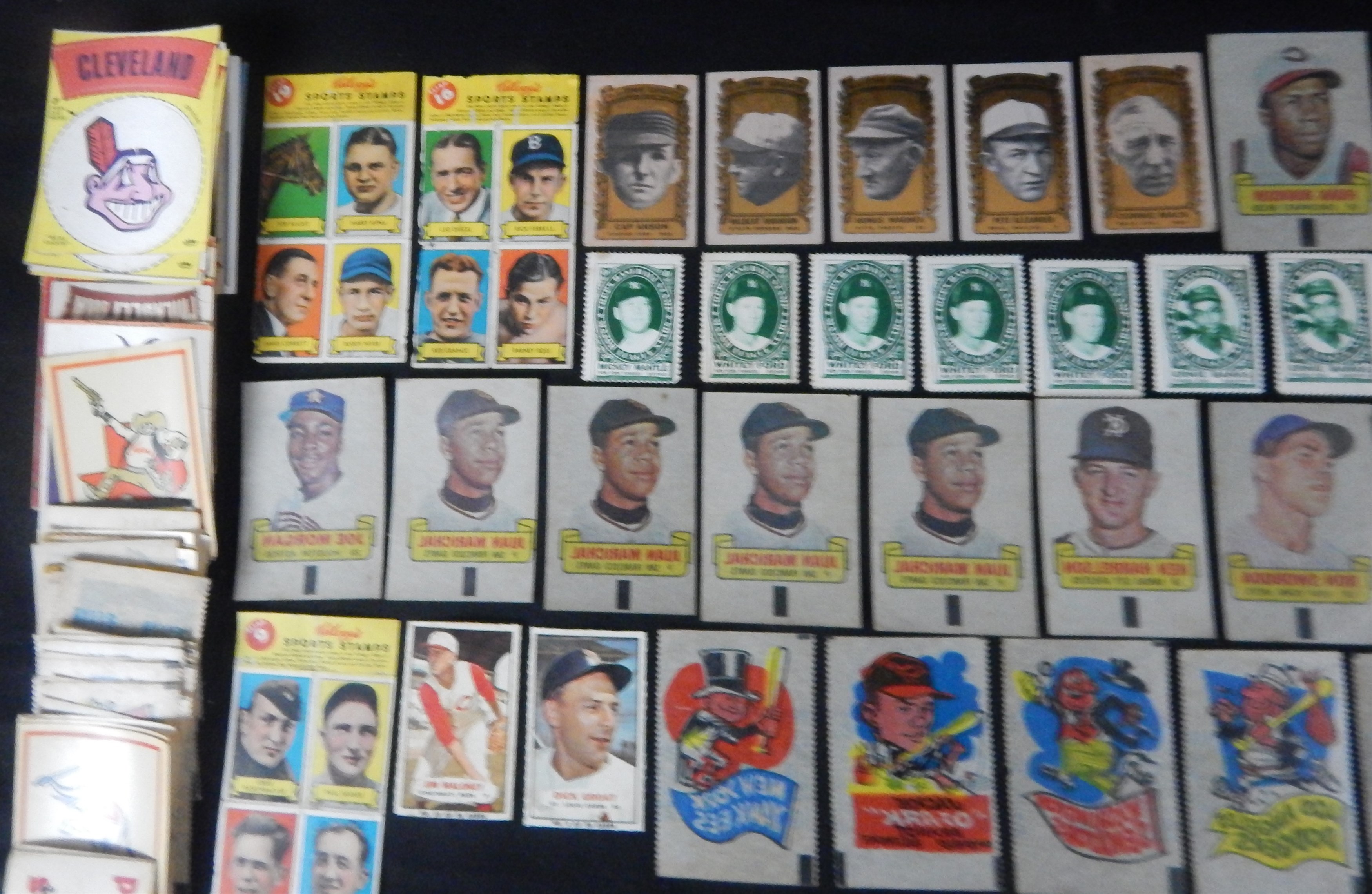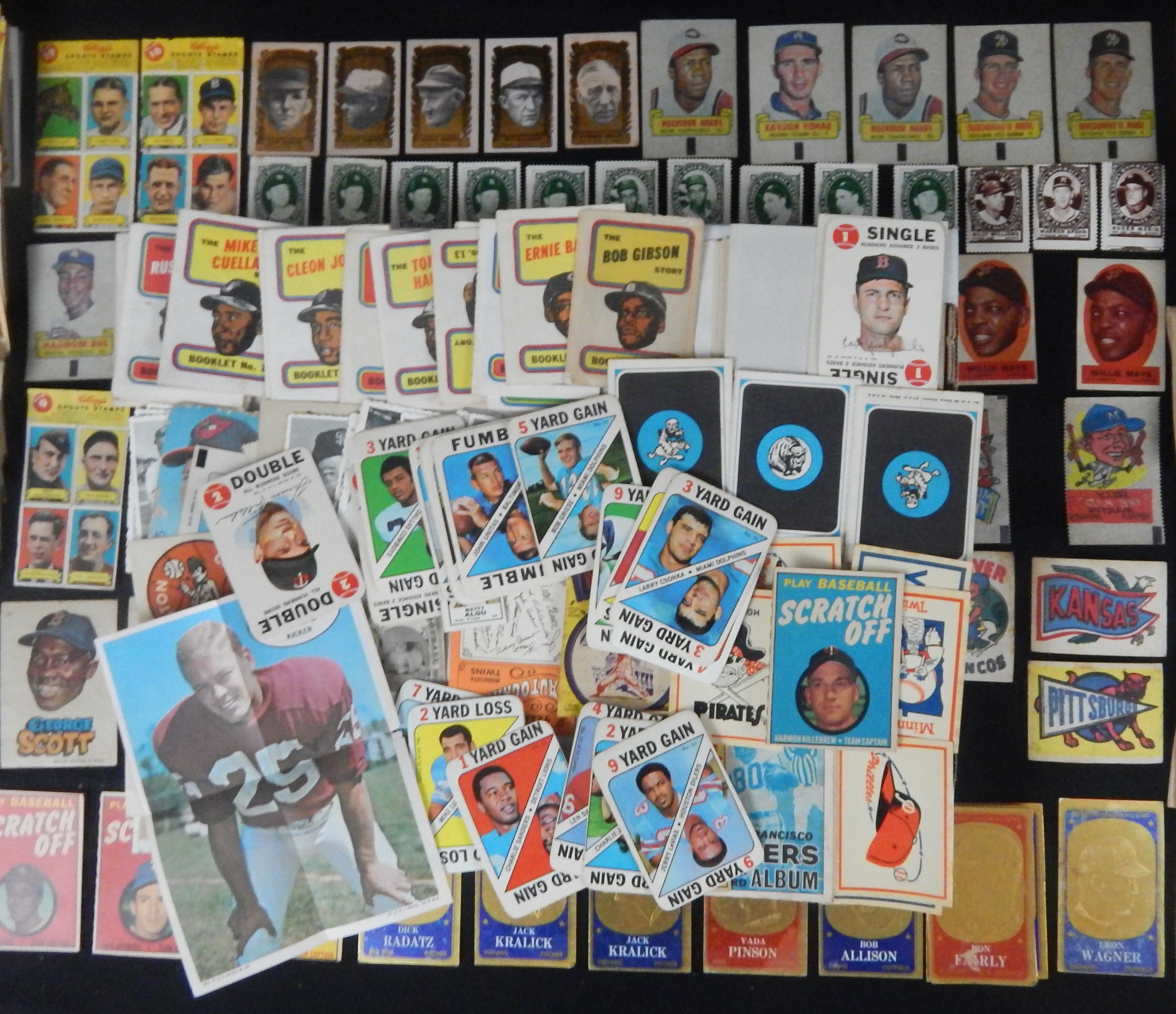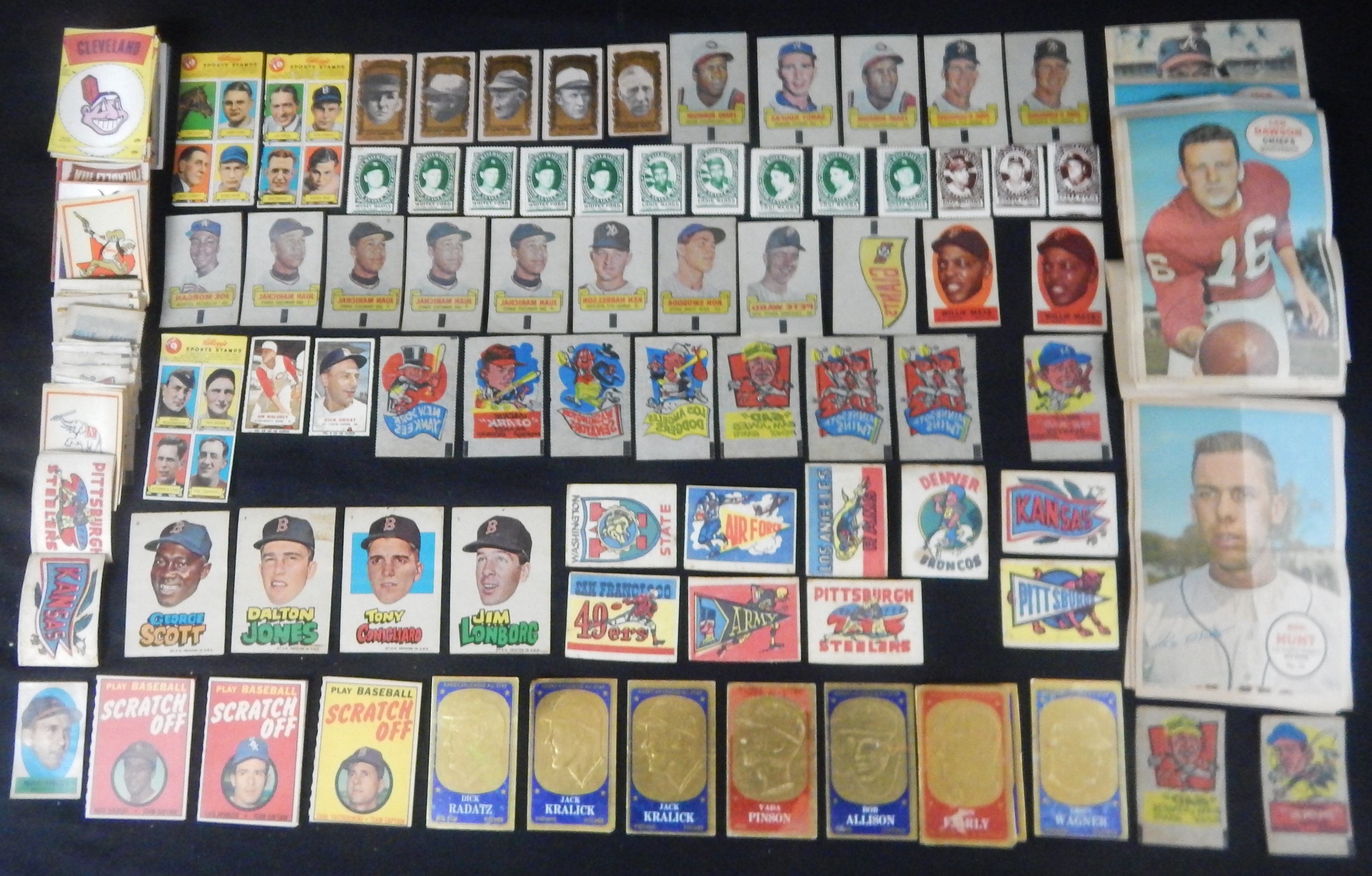 Large eclectic group of Topps inserts and other oddball issues with many stars including several Mantle items. Includes: 1961, 1962 and 1969 stamps. Poster inserts of baseball football and basketball, plus booklets and more. See images.
