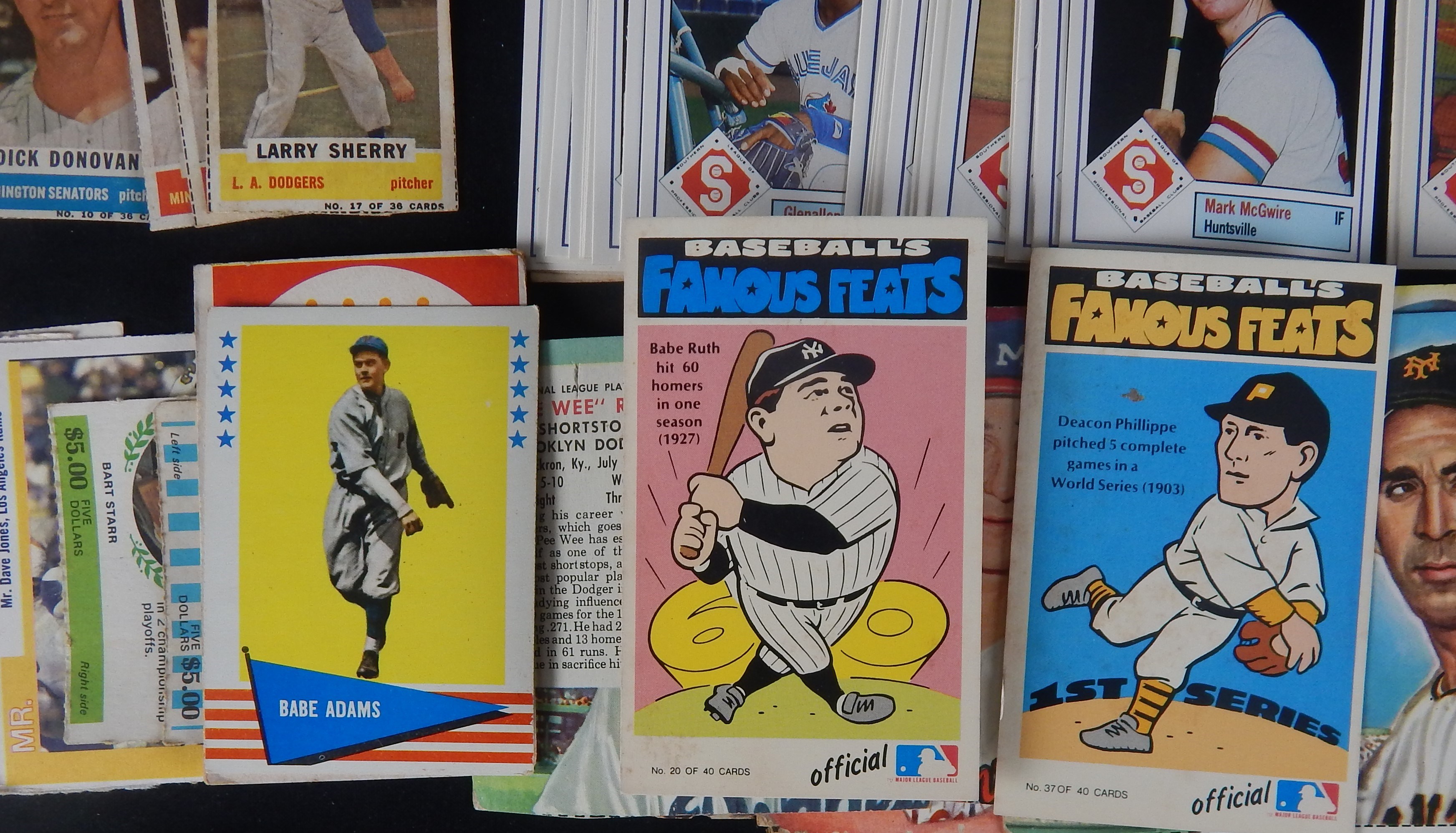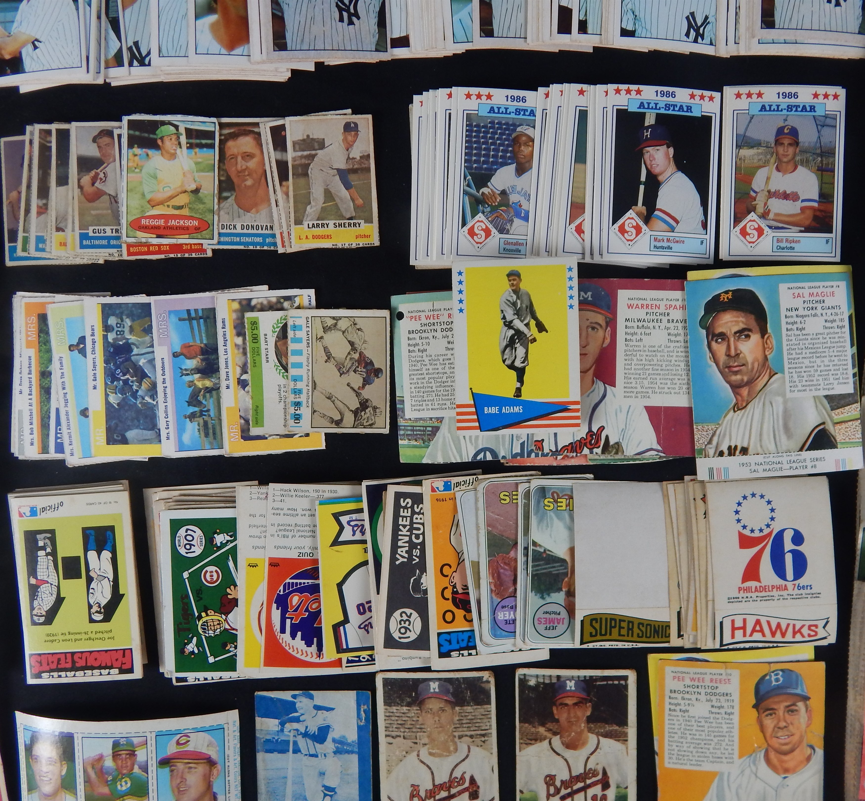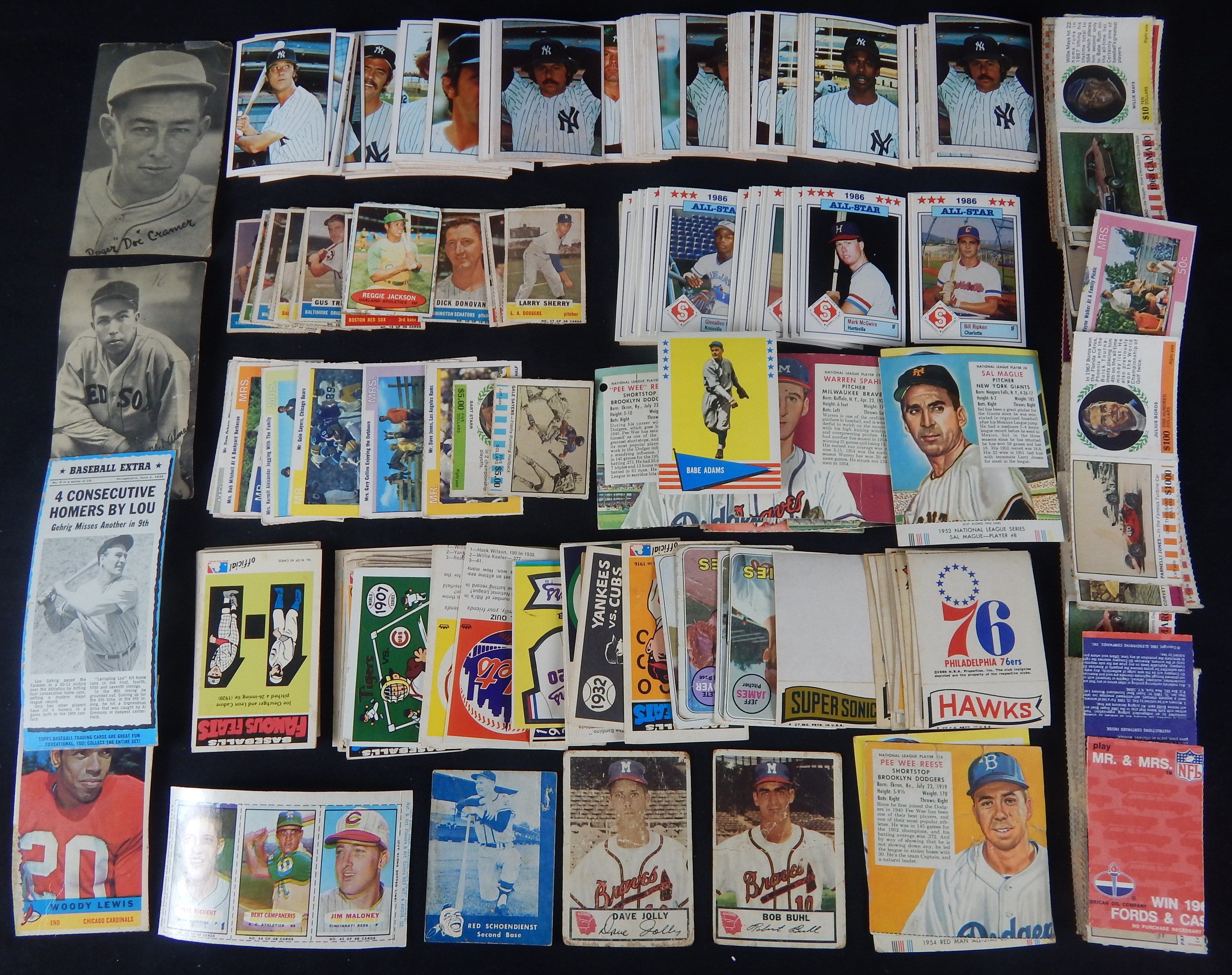 Another eclectic multi-sport grouping of cards. Includes: 1975 Yankees SSPC sets (4), 1970s Fleer Famous Feats, 1960s Bazooka group w/F. Robinson (2), 1959 Fleer Ted Williams (2), a small group of Red Man cards, nice group of 1968 Winner Circle cards (30+).