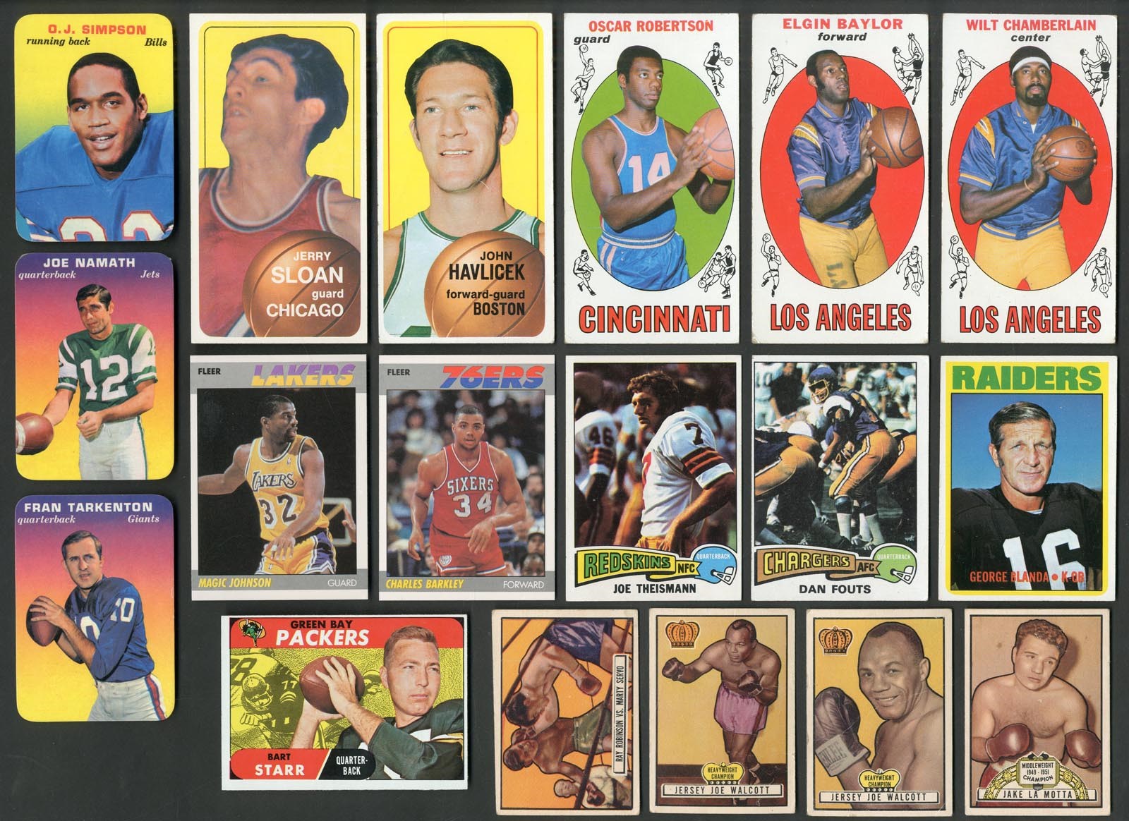 Includes: BASKETBALL - 1969 Topps: 3 cards w/#1 Chamberlain (GD/VG), 35 Baylor (VG/EX) and 50 Robertson (VG). 1970 Topps: 2 cards w/#10 Havlicek (GD) and 148 Sloan (EX).