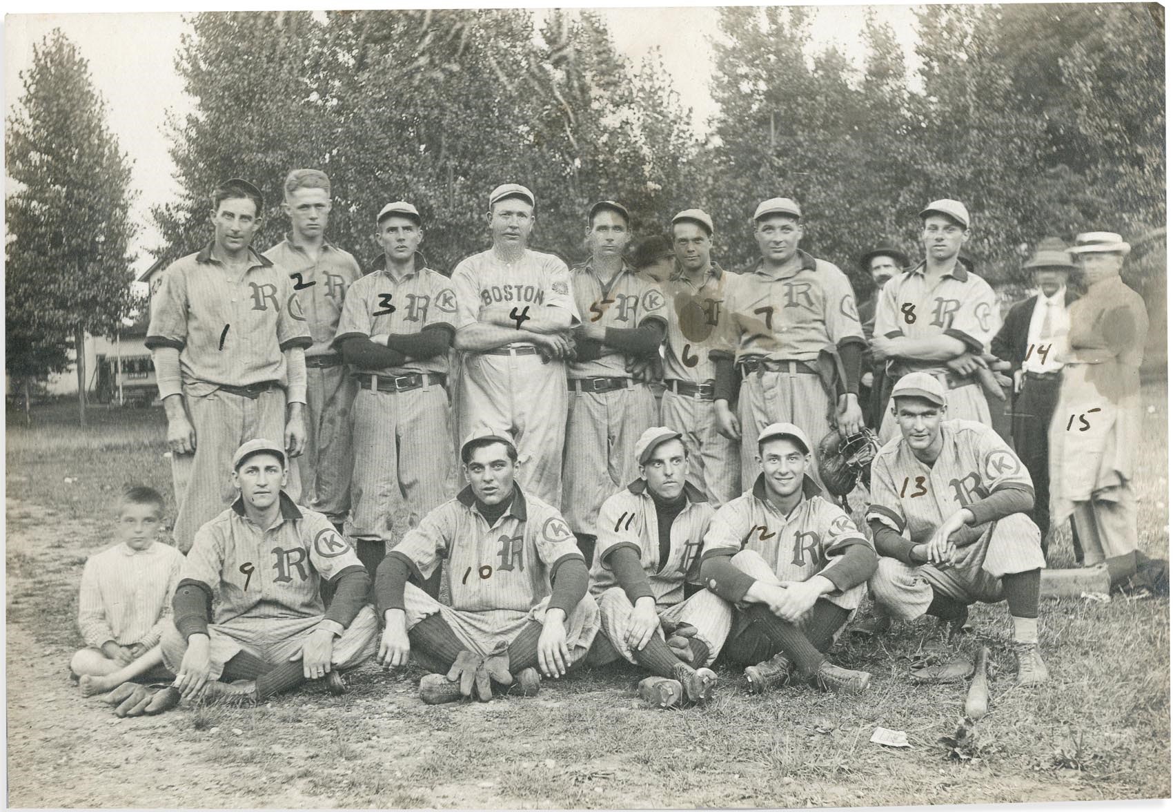 A great rarity, this black & white Type I photo of 1912 Ravenna-O Baseball Club includes Cy Young, who played with the team on Labor Day of 1912 while wearing his Boston uniform.