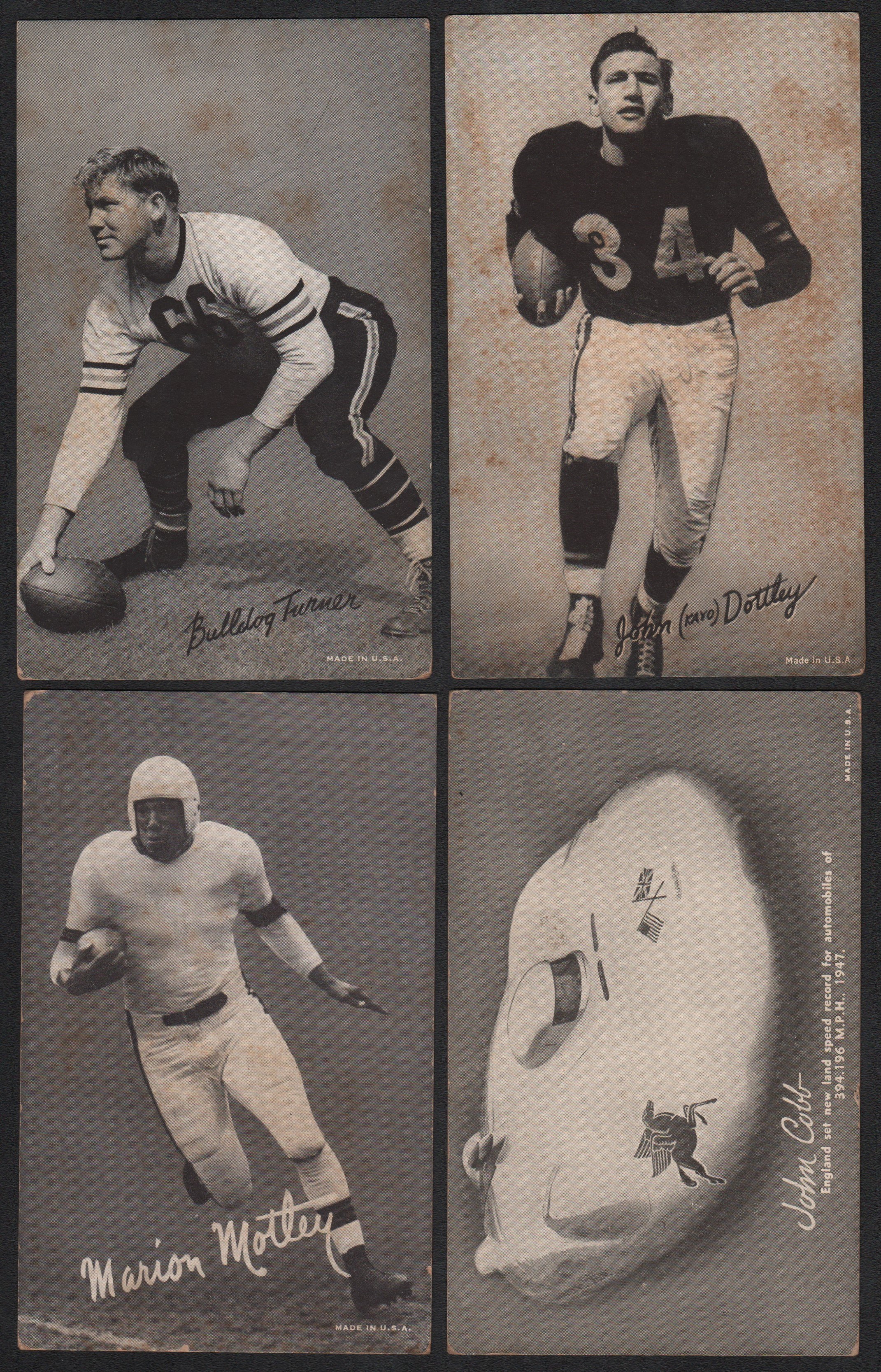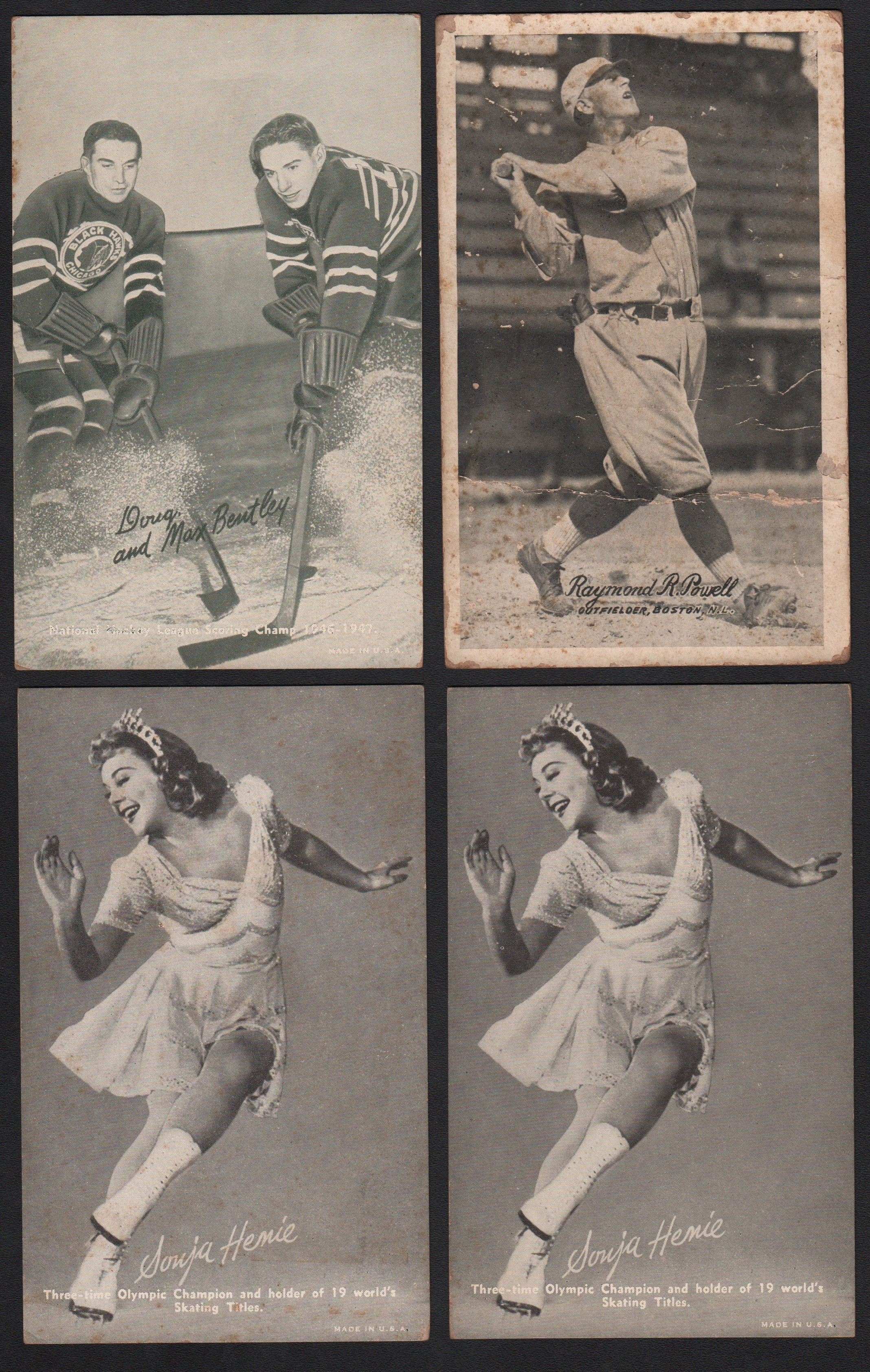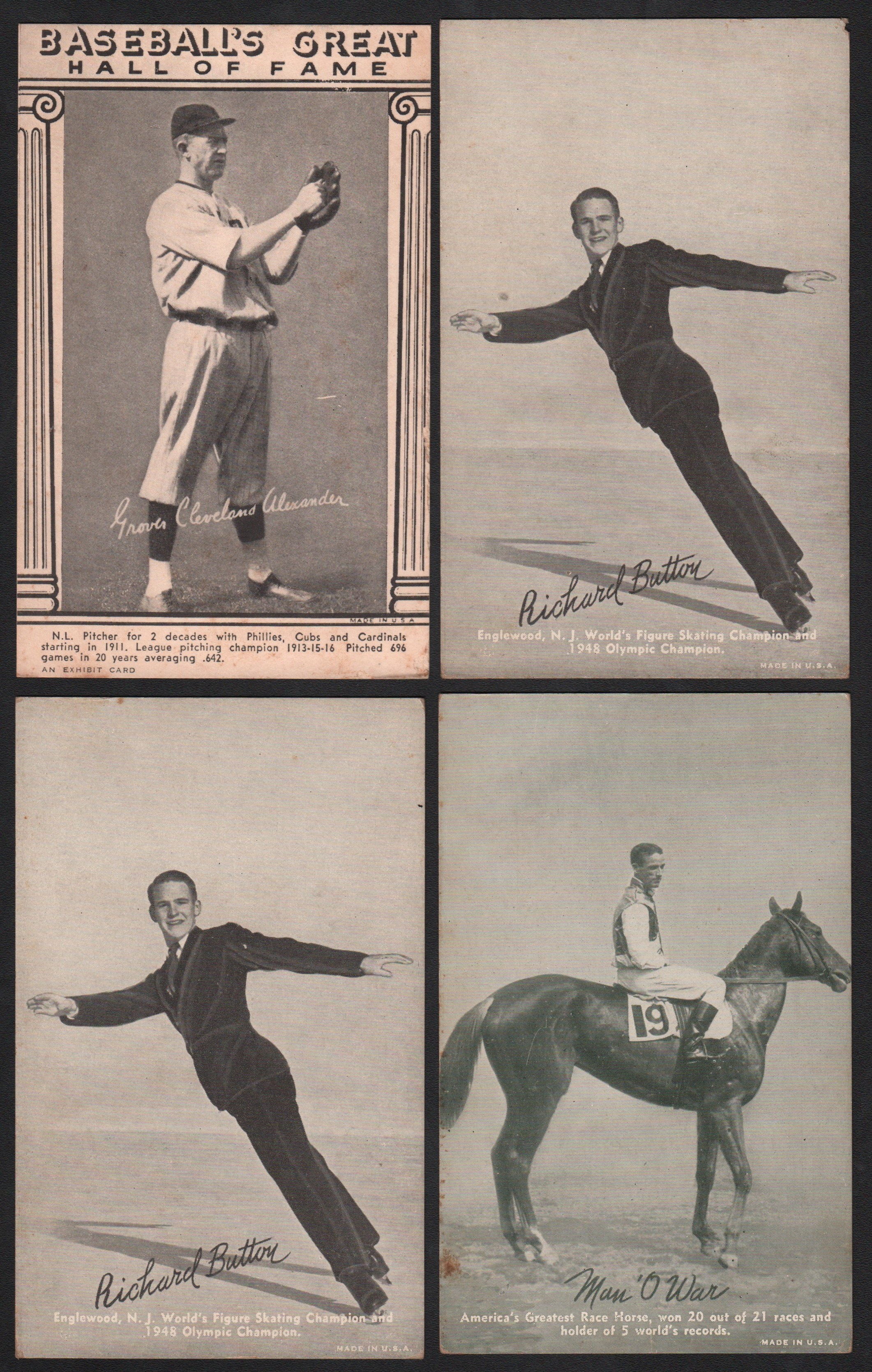 Eclectic mix of (30) exhibits with all sports, plus non-sports cards with Marion Motely (FB), Bulldog Turner (FB), Richard Buttons (skating), Man O' War, Ben Sklar - marbles champ! (5) and Sonja Henie (3).
