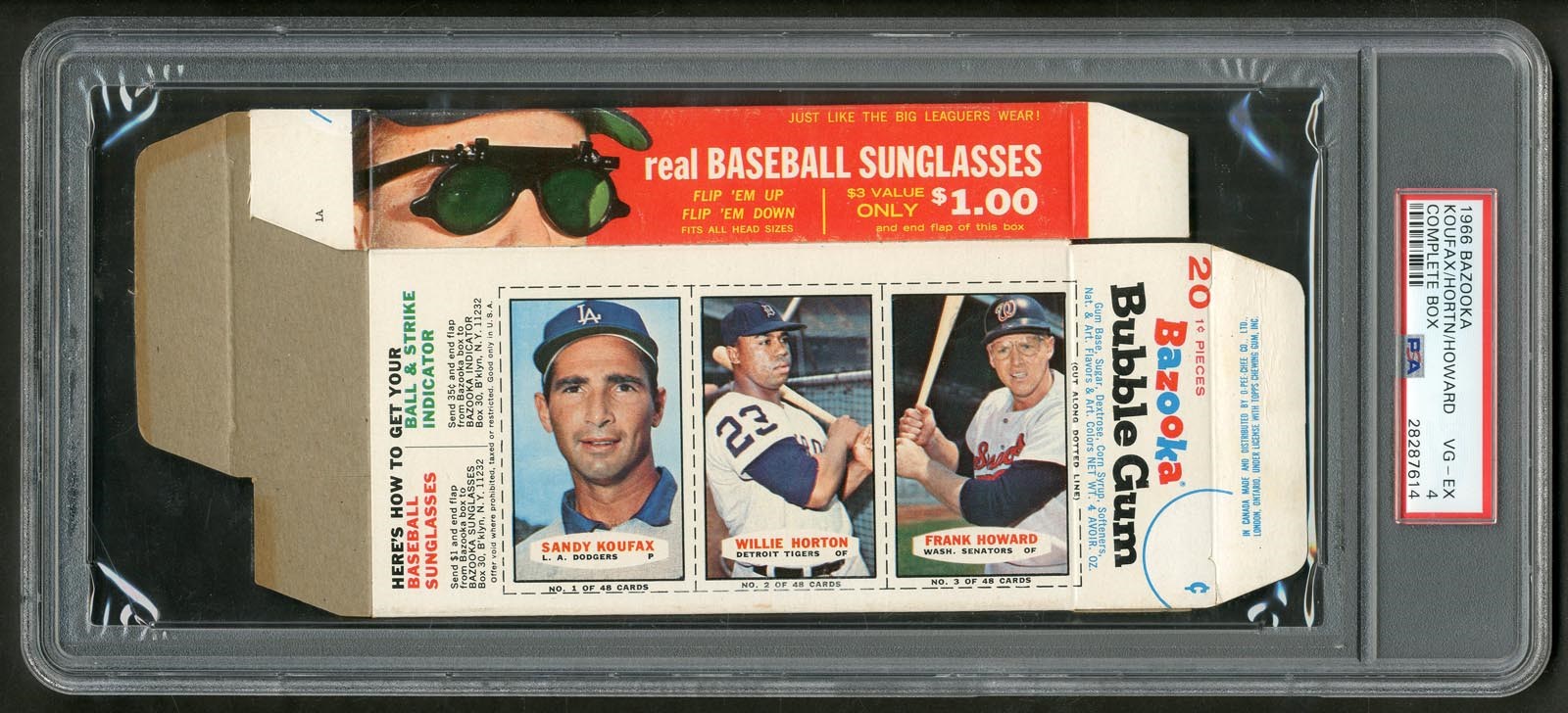 1966 Bazooka Complete Box with Koufax, Horton, and Howard encapsulated PSA VG-EX 4.