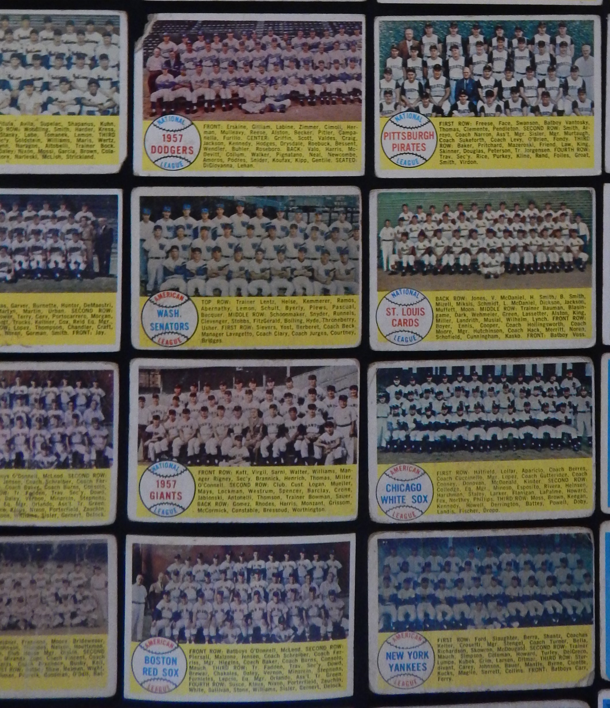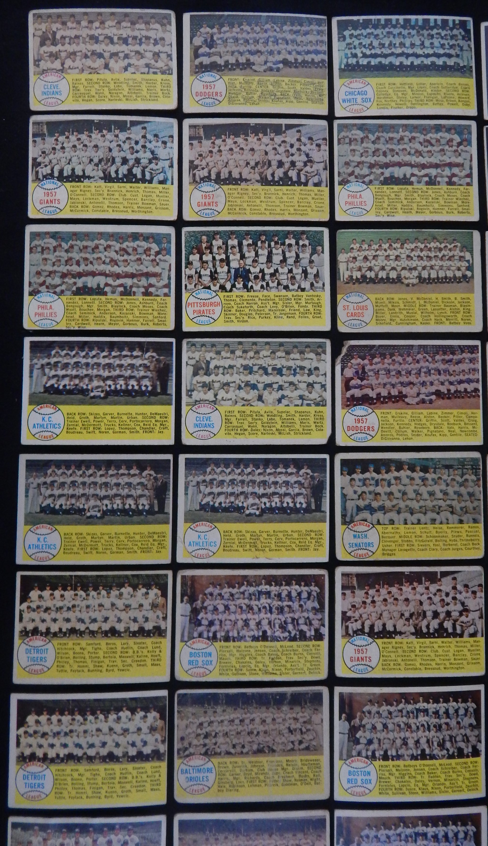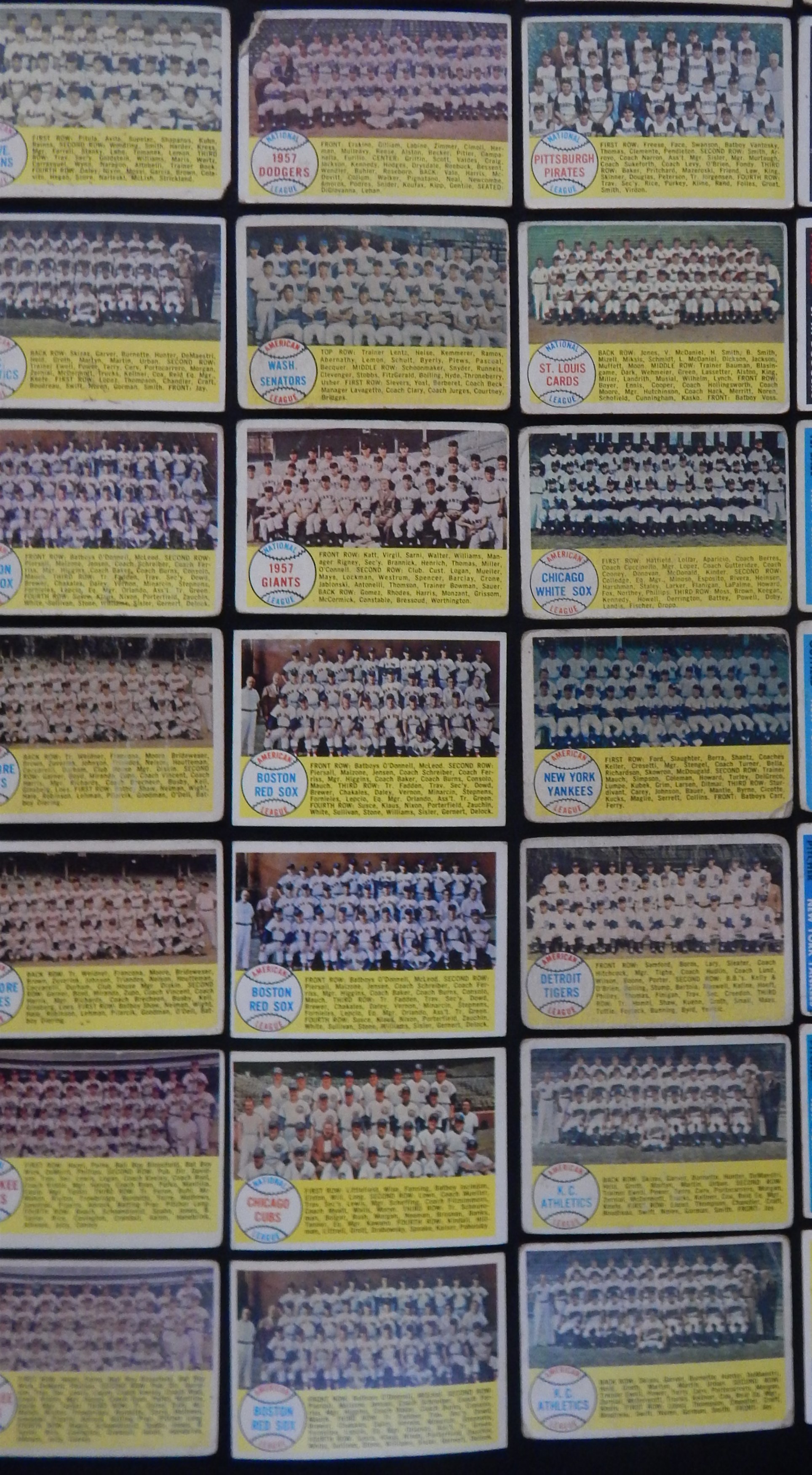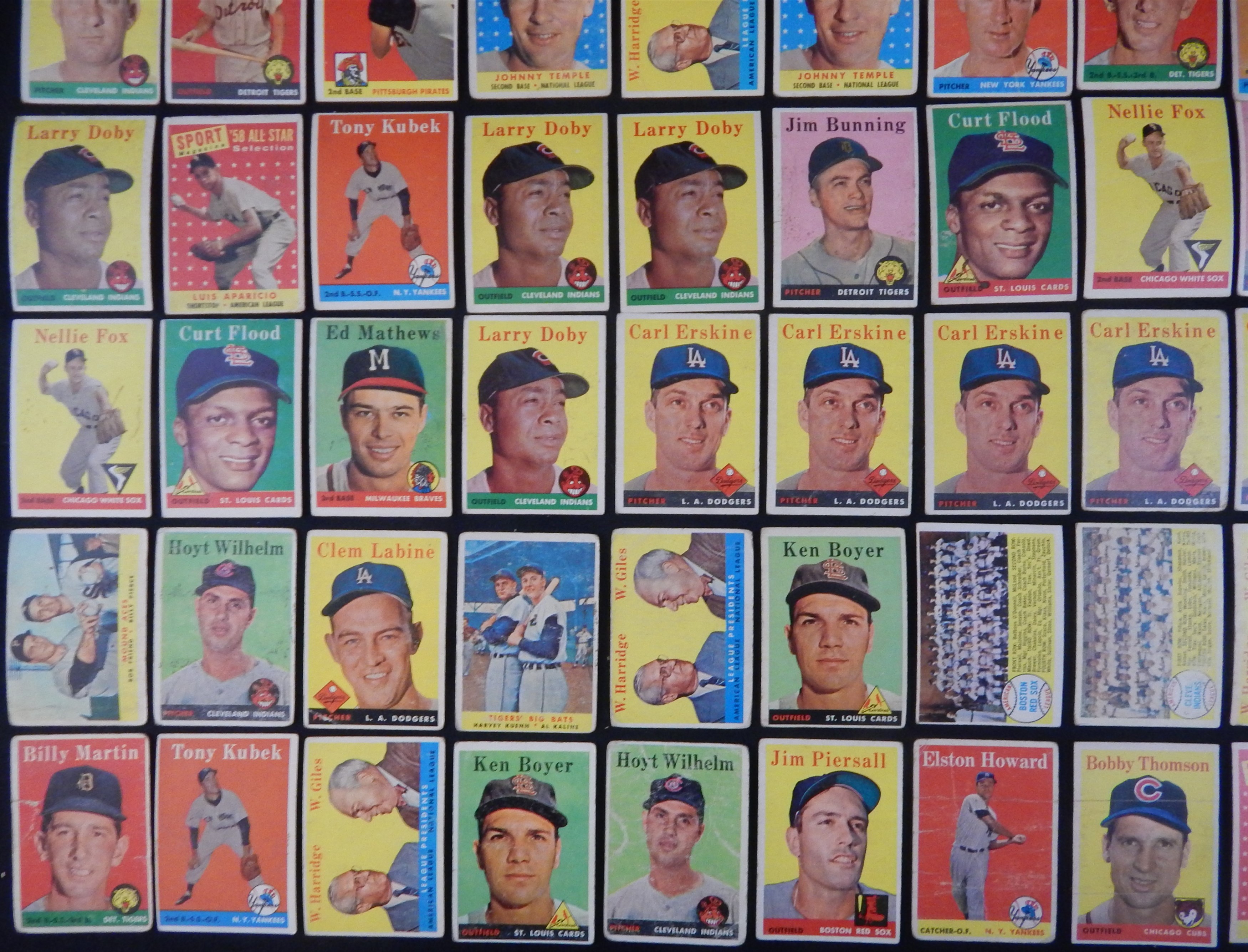 Total of 2,000+ cards, mostly lower-to-mid grade, including #47 Maris RC (FR), 88 Snider, 150 Mantle (PR), 310 Banks (really, really bad), 375 Reese, 418 Mantle/Aaron (GD), 476 Musial AS (FR, ink), specials, teams (30), minor stars, yellow letters (4) and other HOFers such as Bunning, Roberts, Schoendienst etc.
