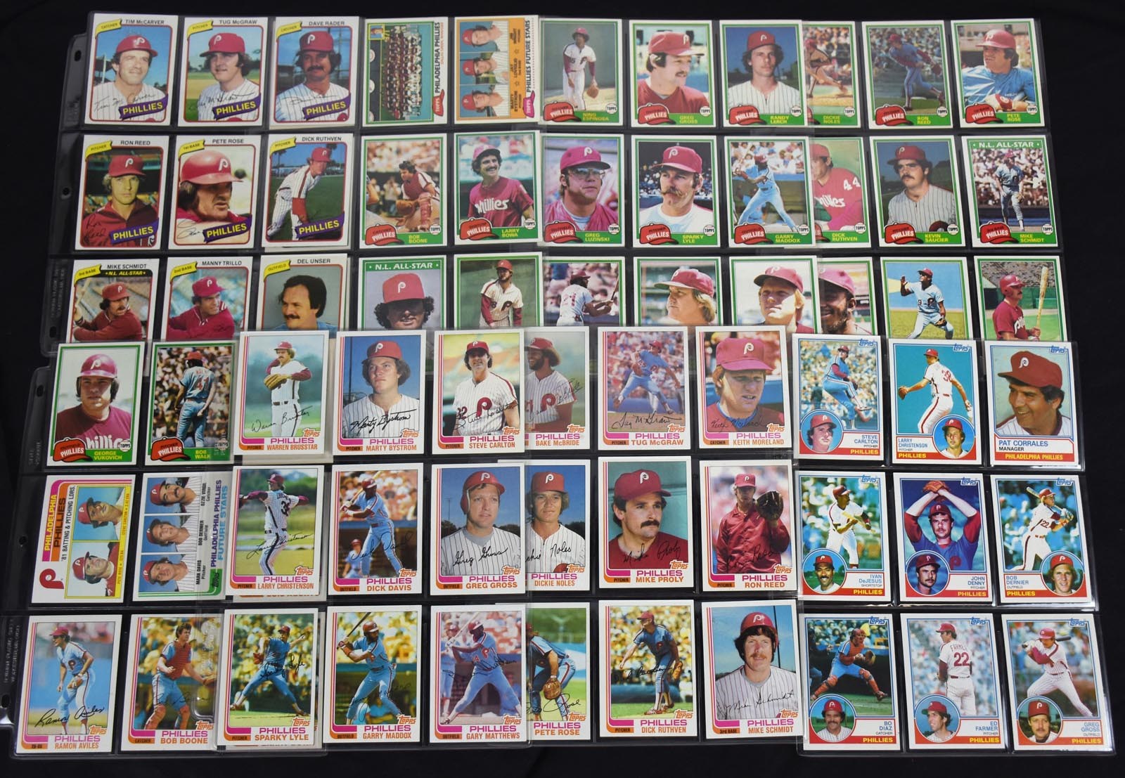 Three full three-ring binders full of New York Yankees, New York Mets and Philadelphia Phillies complete team sets from 1980-1996. All the stars and rookie cards are presents, and include several World Series championship teams. All sets are NM to NM/MT condition.