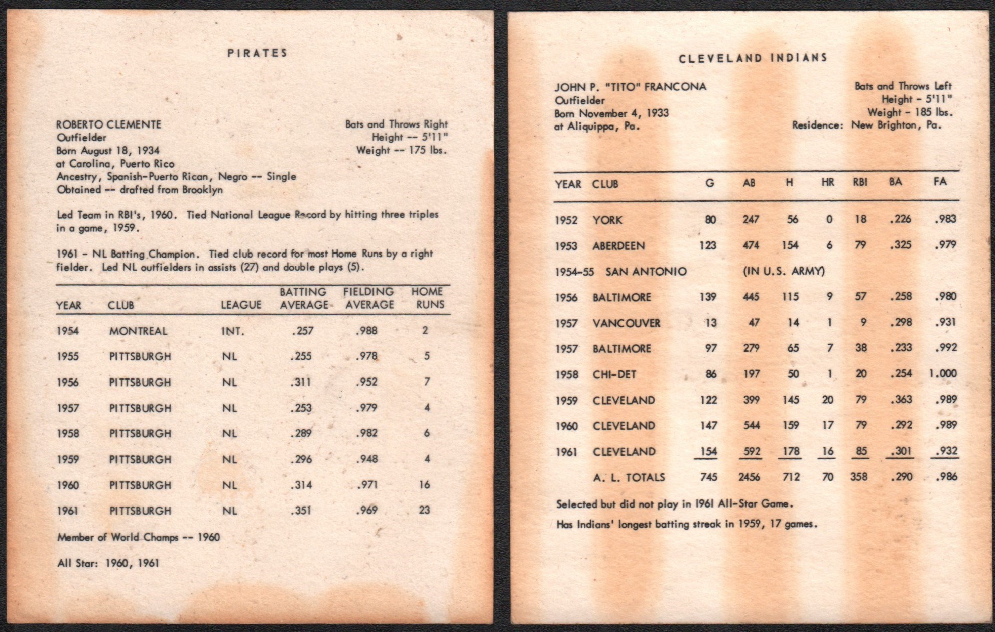 Lot # 56: 1930s-70s Baseball Card Eclectic Lot with Clemente