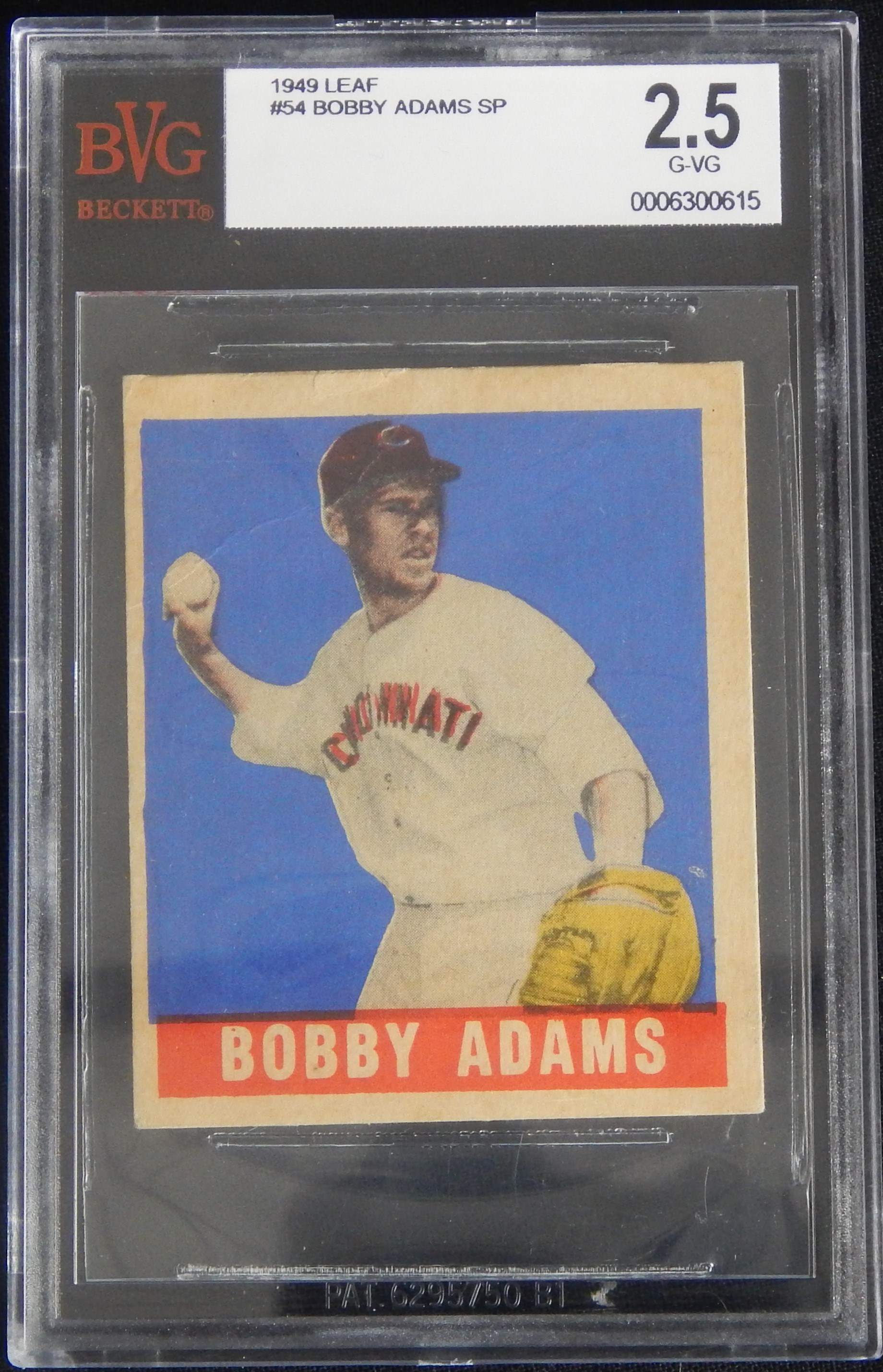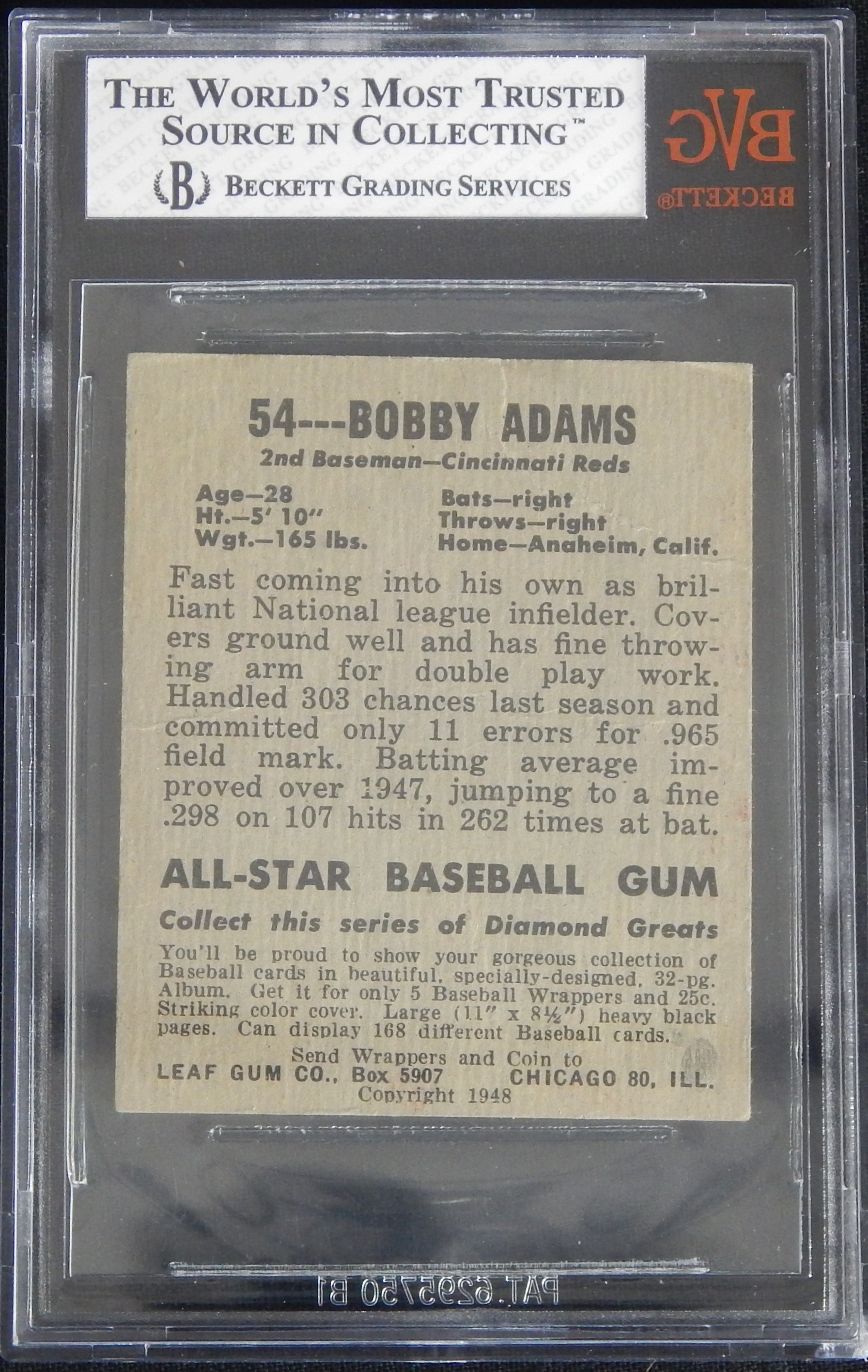 Very tough singe print card from the popular 1948 Leaf set. Graded by BVG G-VG 2.5, but appears much nicer.