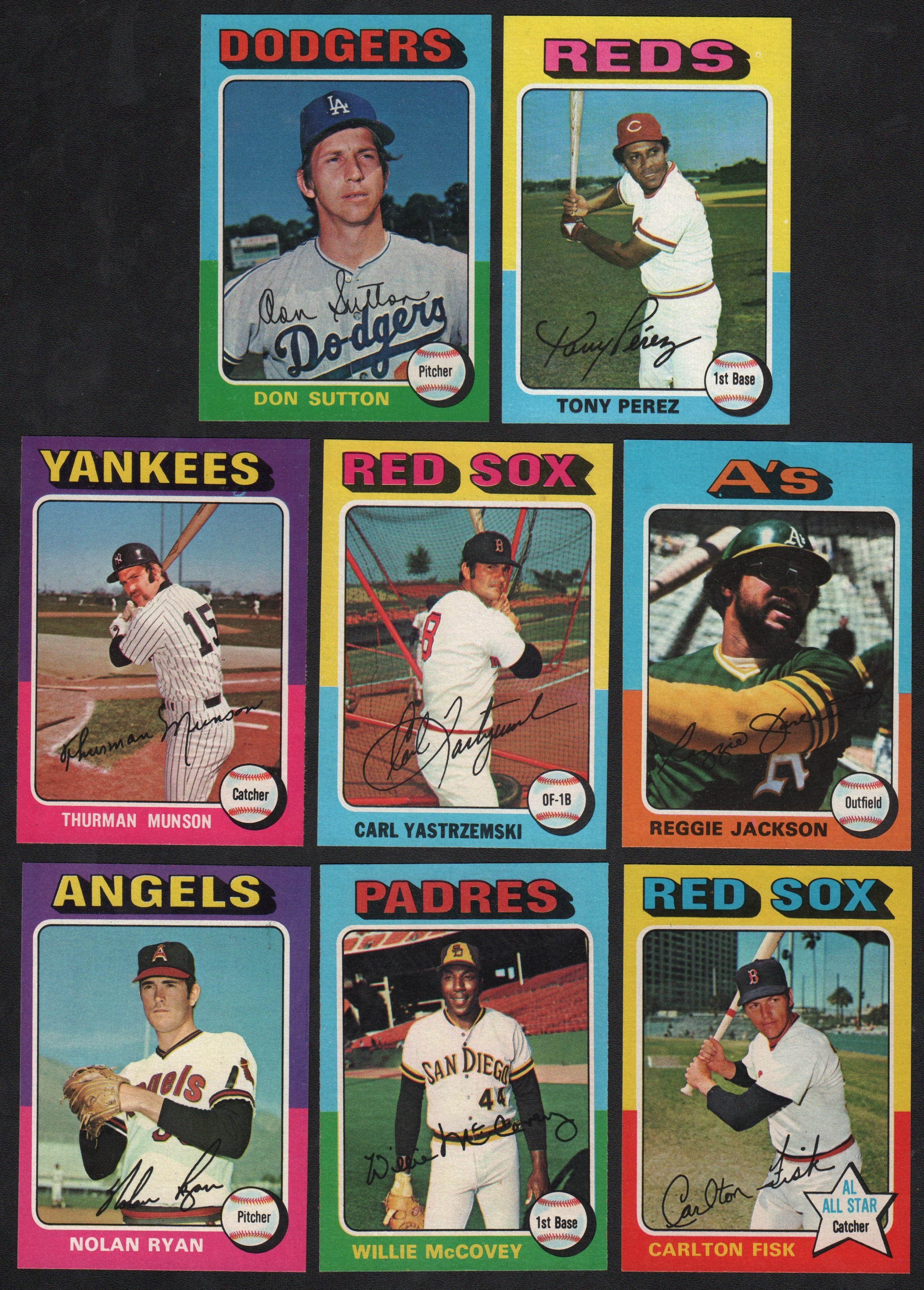 Includes: #20 Munson (NM/MT), 80 Fisk (NM/MT), 220 Sutton (NM/MT), 280 Yaz (NM), 300 Reggie (NM/MT), 450 McCovey (NM), 500 Ryan (NM) and 560 Perez (NM/MT).