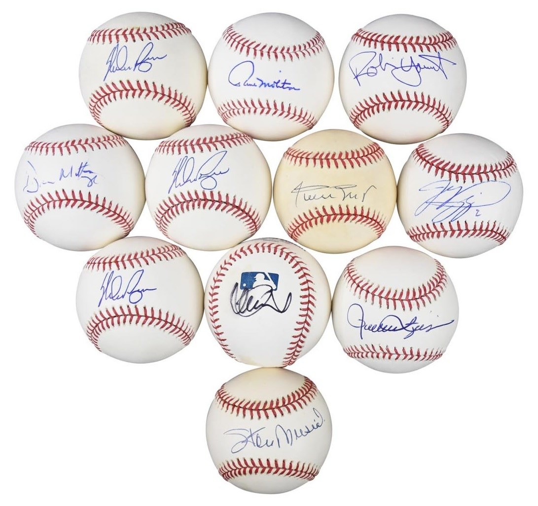 Lot # 115: HOFer Single Signed Baseball Collection(11) with (3) Nolan Ryan's