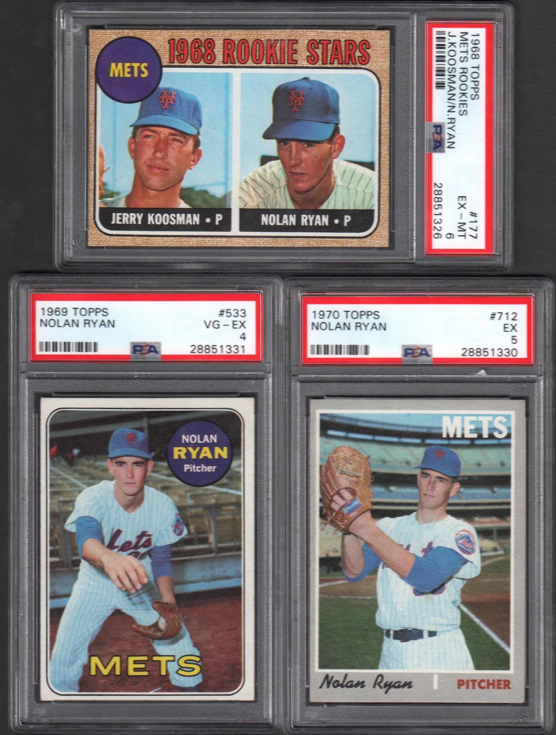 The first three regular issue PSA graded Topps cards of Nolan Ryan, including a high end PSA EX-MT 6 rookie card!
