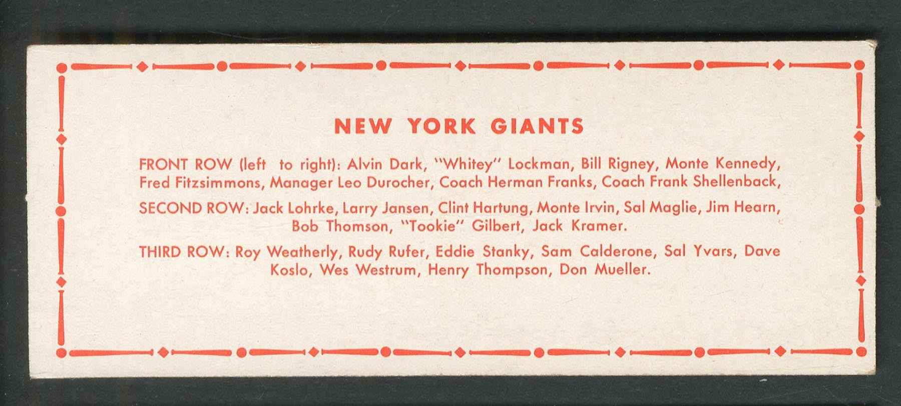 Lot # 65: 1951 Topps Teams New York Giants Undated