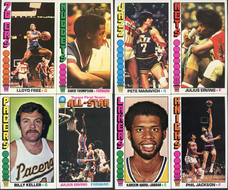 Very fresh to the hobby complete set of 1976-1977 Topps basketball cards.  All cards grade NM to NM/MT, some MINT with a few lesser due to centering.