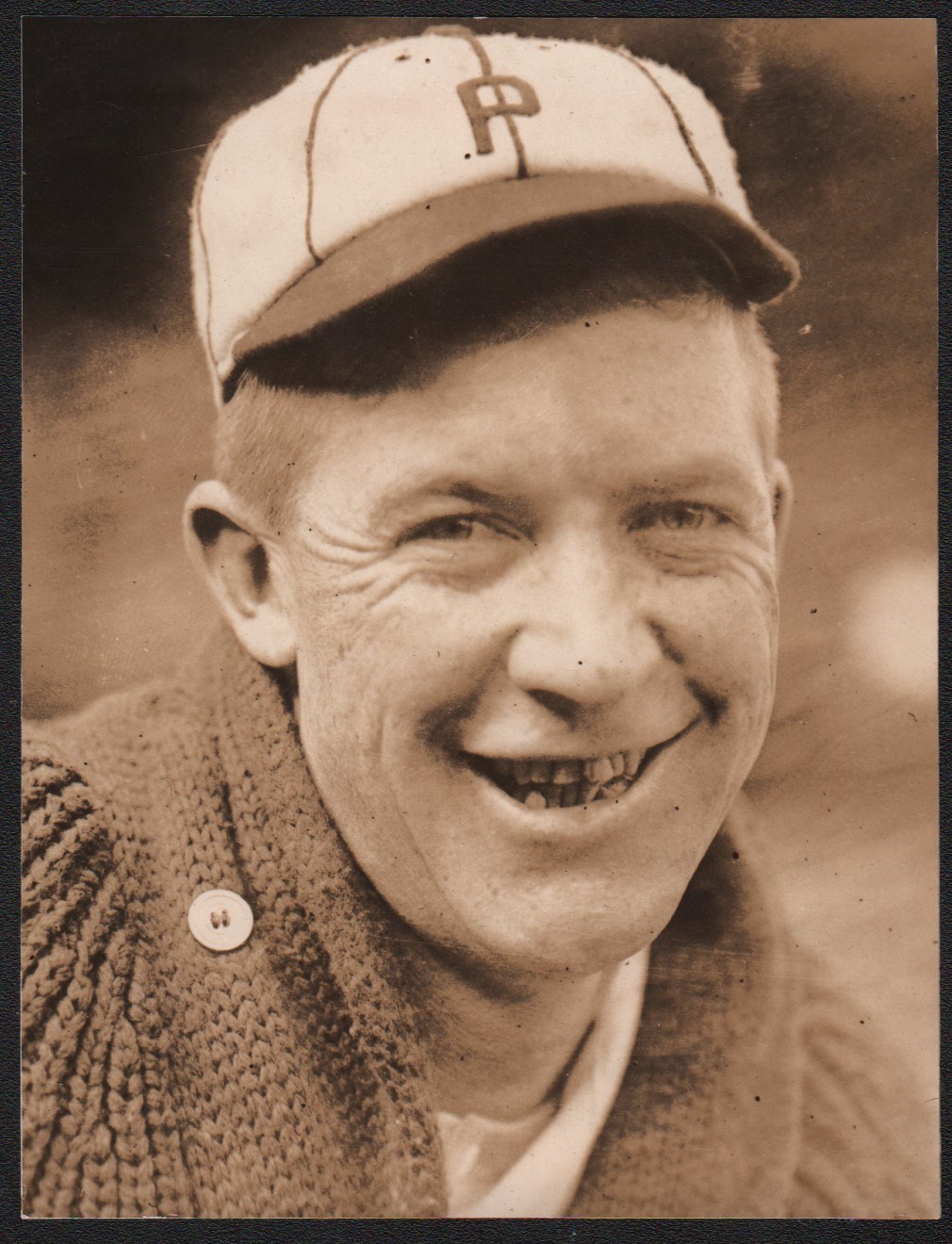 Wow did this guy have bad teeth. Spectacular iamge is small but powerful. Philadelphia Phillies era. 3.5x4.5".