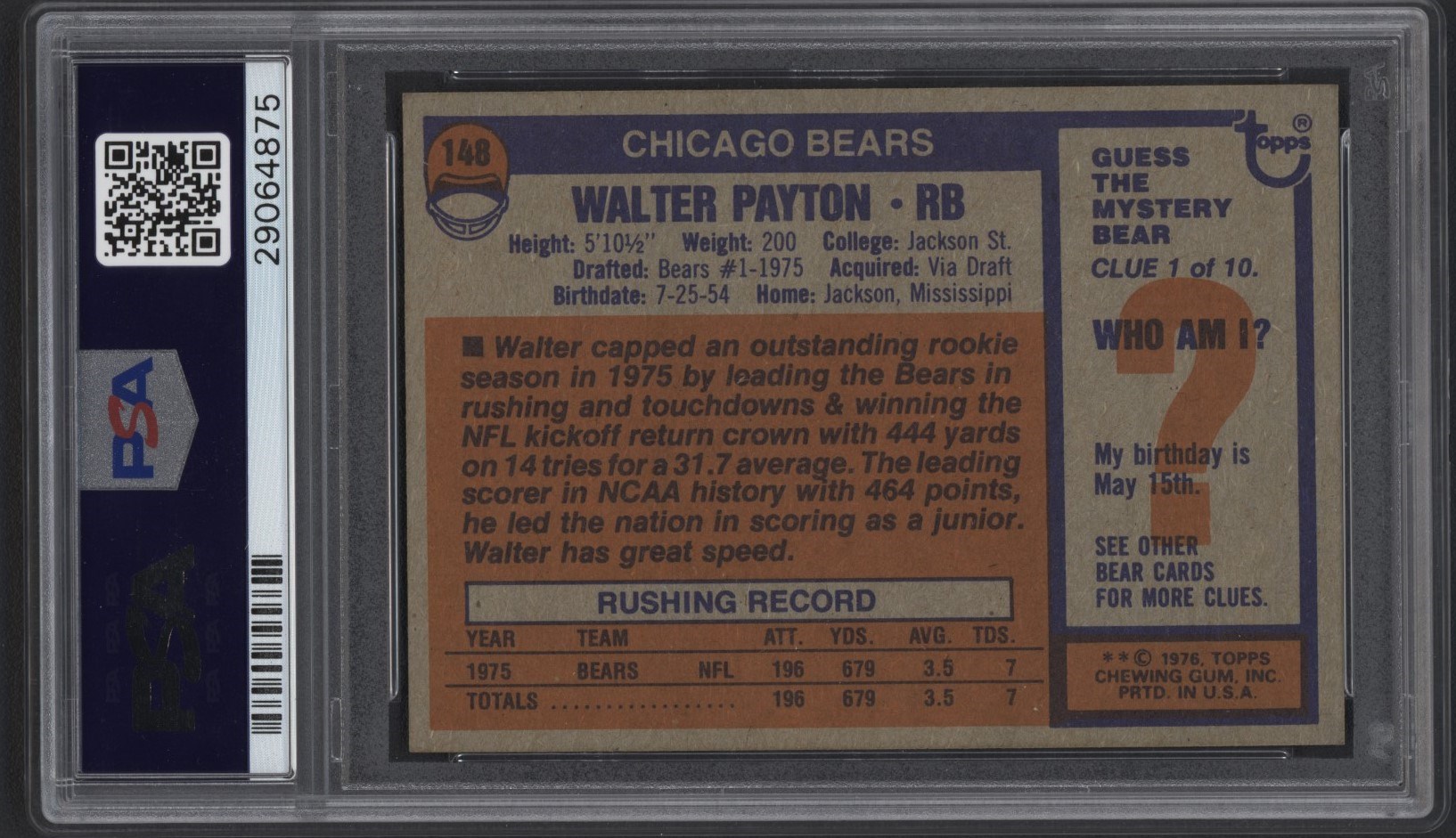 Lot # 102: 1976 Topps #148 Walter Payton PSA NM-MT 8