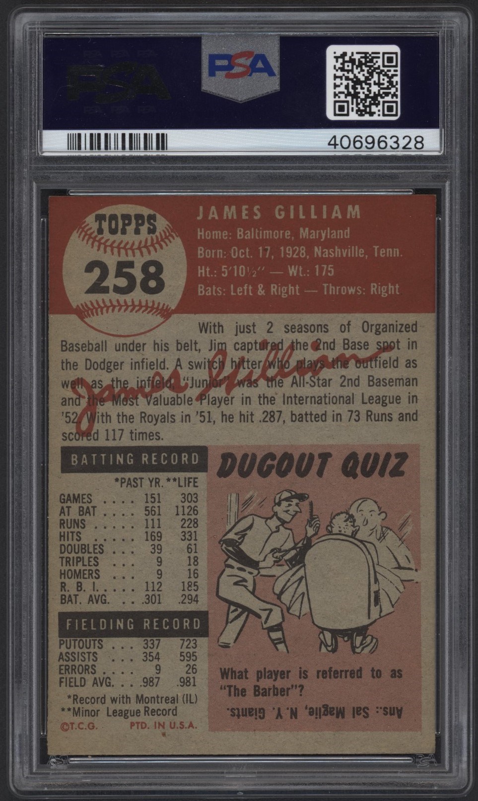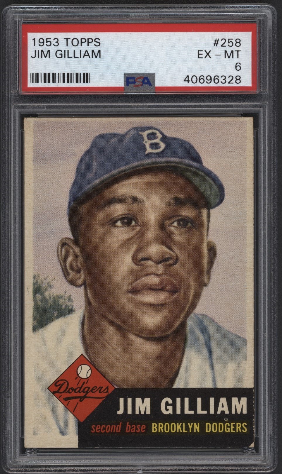 Great 1953 Topps #258 Jim Gilliam PSA graded EX-MT 6!