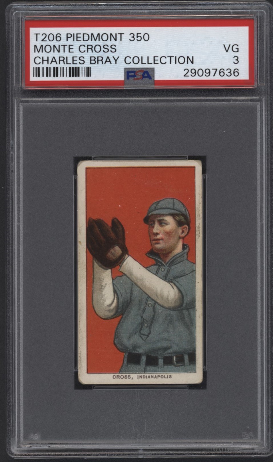 From the Charles Bray Collection.  T206 Piedmont 350 Monte Cross.  Graded by PSA VG 3.