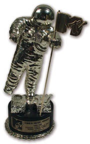 Do we love awards! This very hip and out-of-this-world award sometimes called "The MTV Moonman" was first introduced and awarded in 1984, the same year new artist Madonna made her MTV debut. Our MTV Music Television Video Music Award was given in the 1988-1989 season for Viewers Choice Video 1989 for Madonna's "Express Yourself" to David Fincher. The statue is 12" tall with a 5" base and is in beautiful condition.