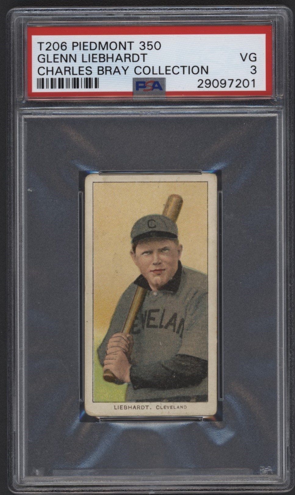 From the Charles Bray collection.  T206 Piedmont 350 Glenn Liebhardt.  Graded by PSA VG 3.