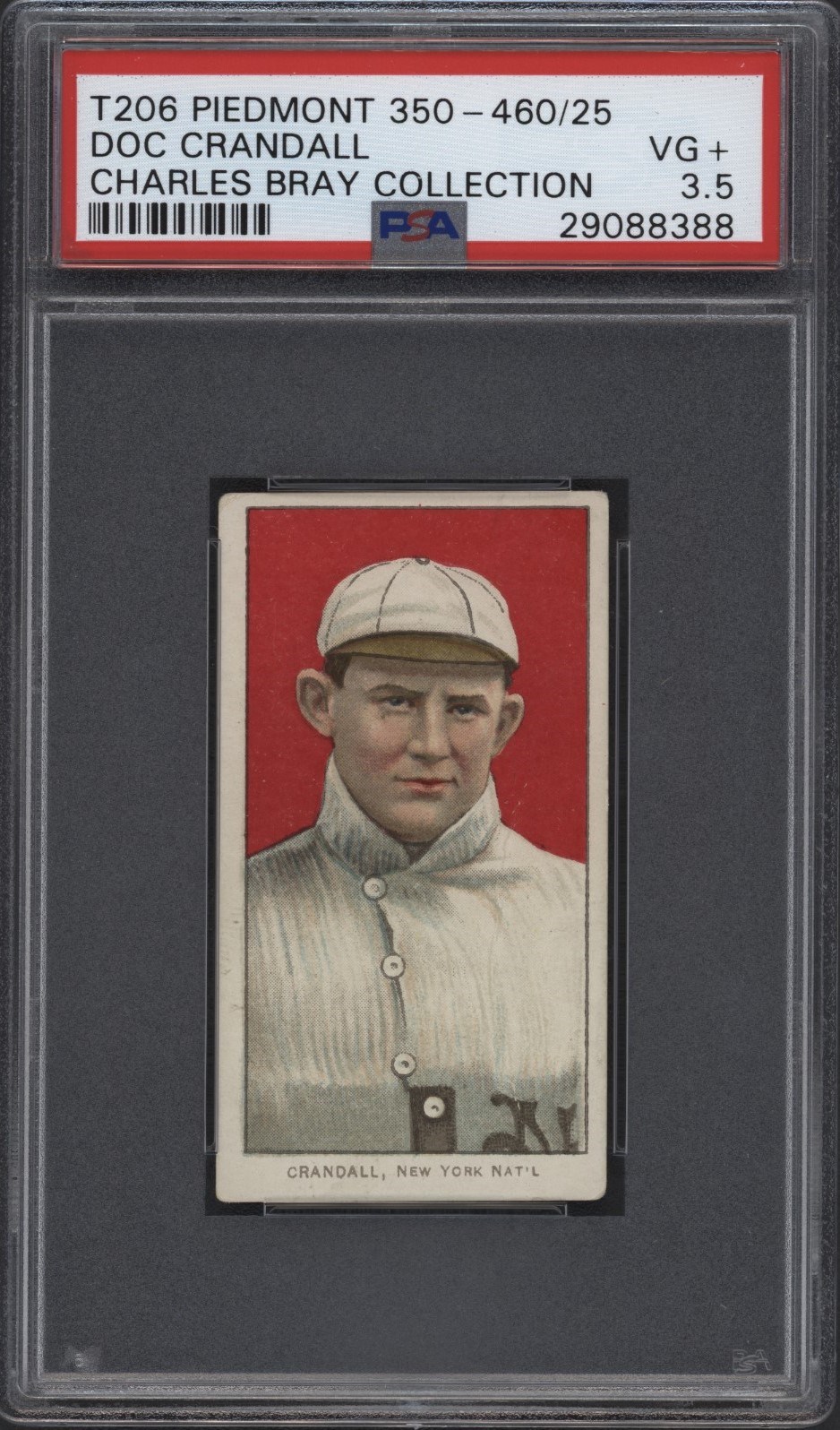 From the Charles Bray collection.  T206 Piedmont Doc Crandall.  Graded by PSA VG+ 3.5.