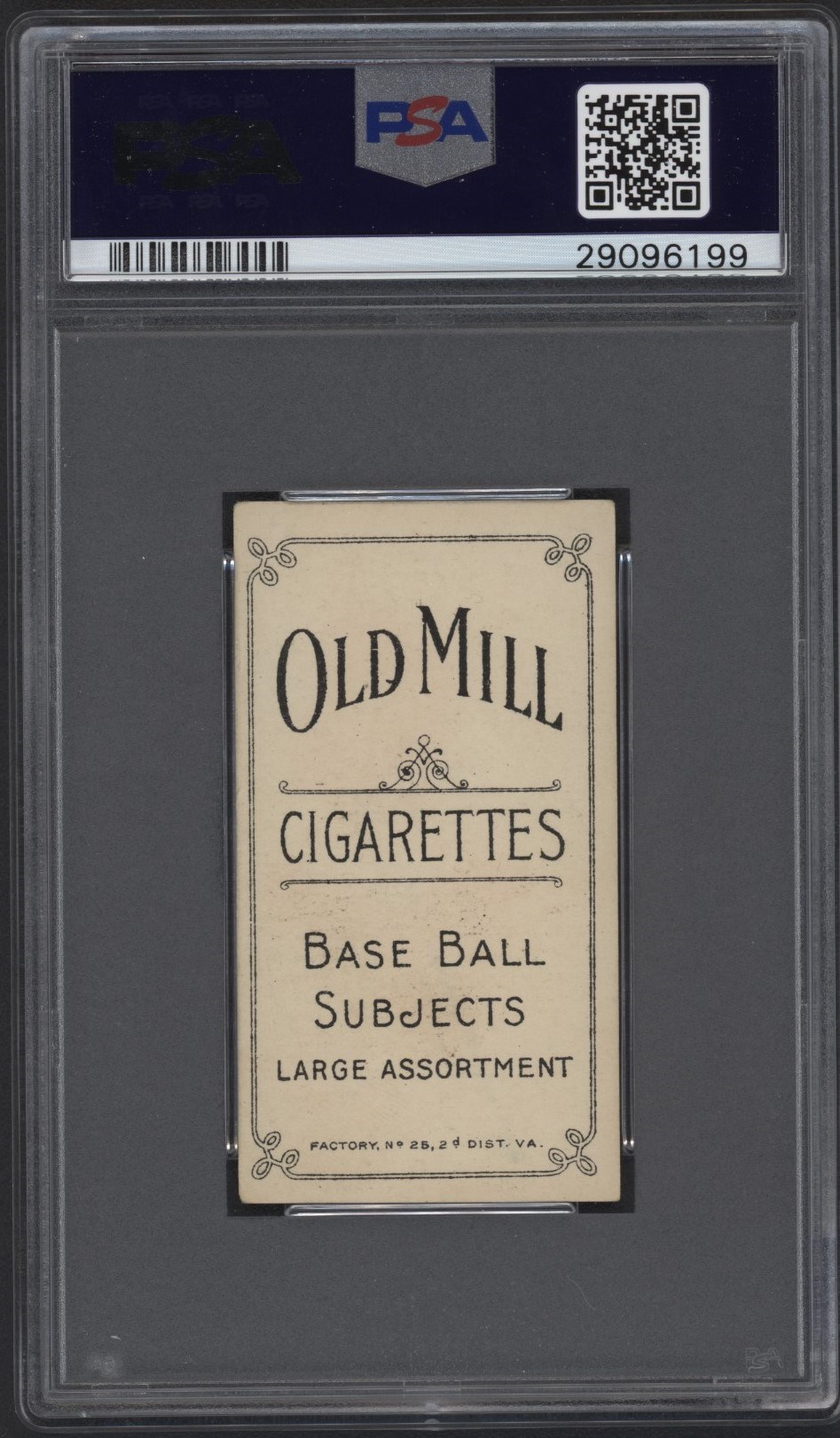 From the Charles Bray collection.  T206 Old Mill Cigarettes Fred Snodgrass.  Graded by PSA EX 5.  Very nice.