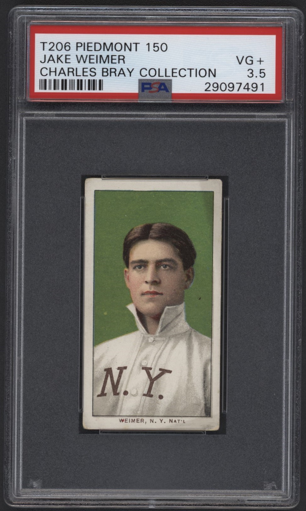 From the Charles Bray collection.  T206 Piedmont 150 Jake Weimer.  Graded by PSA VG+ 3.5.