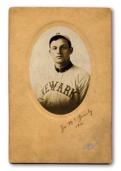 The Iron Man poses for the camera in this rare photograph snapped two years after the HOF'er left the Majors to play for the Newark squad in the International League. He's identified (though his name is misspelled) in vintage ink below his photograph. Mount has very minor back damage, and almost no wear on the front, leaving the appearance of a NRMT piece.