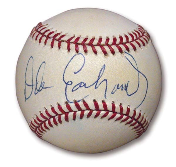 Included letter of authenticity explains that this ball was acquired at the Cincinnati Convention Center’s annual automobile show. Ball is ONL (Coleman), and big sweet spot signature is NRMT blue ink. A great way to remember the fallen Intimidator.