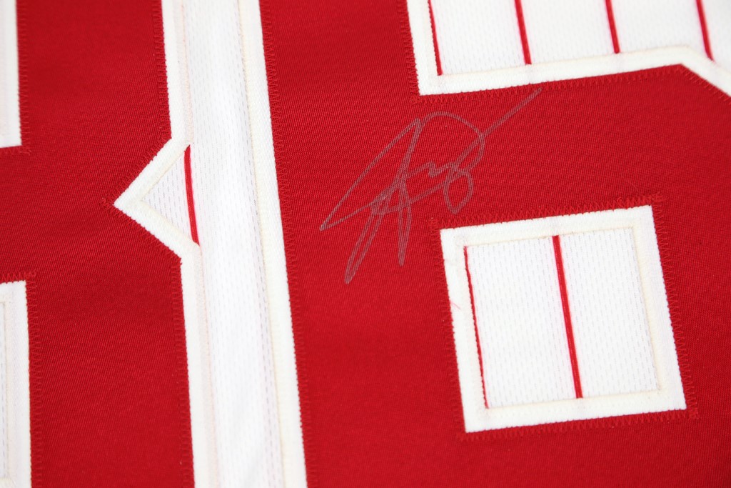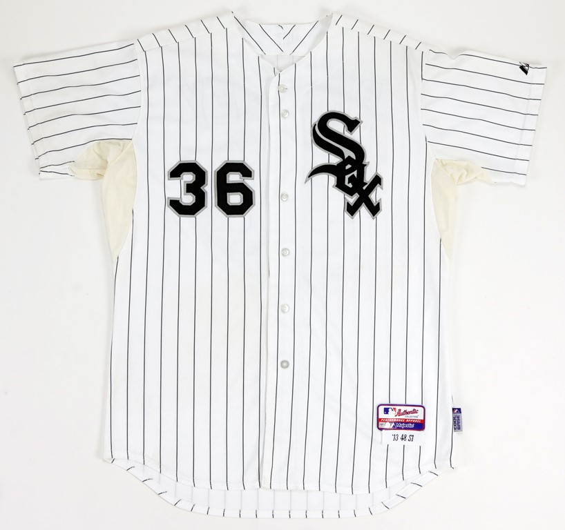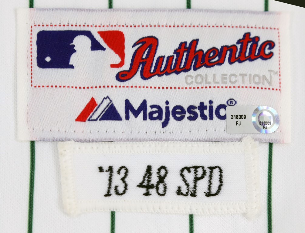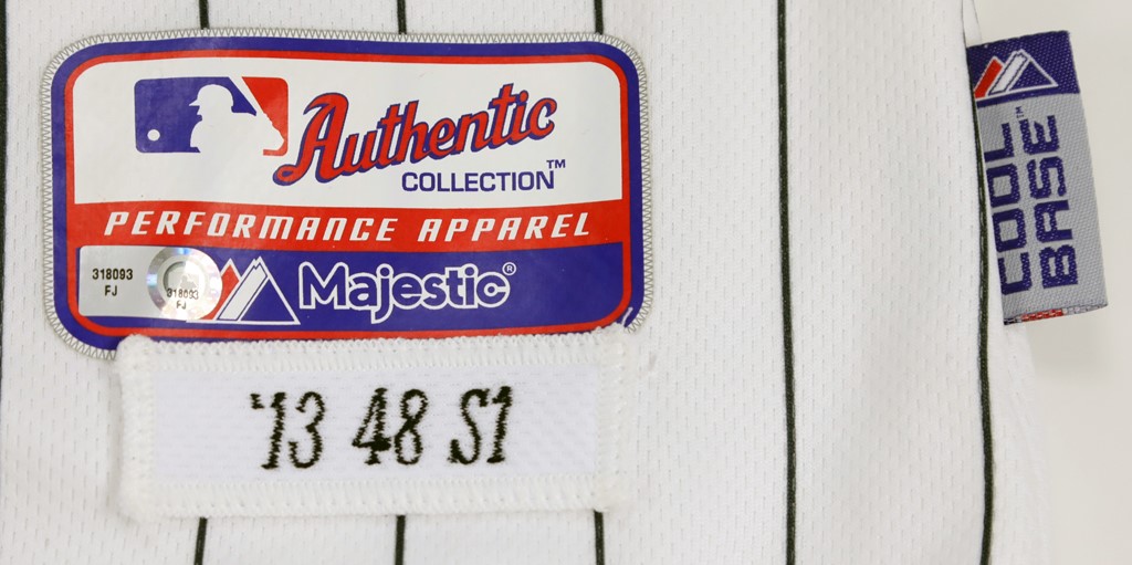 (1) White and black home jersey made by Majestic with front tail tag that reads " '13 48 S1."