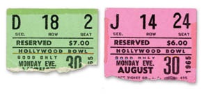 A recording of this night's performance produced seven of the songs combined with six from the lone 1964 show to comprise the 1977 release of "The Beatles At The Hollwood Bowl". A pair of stubs.