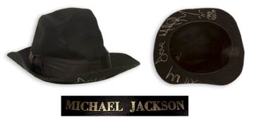 "All My Love -Michael Jackson 1998" is signed beneath the brim on this impressive black fedora. A chance to own one of pop's reigning legend's signed hats.