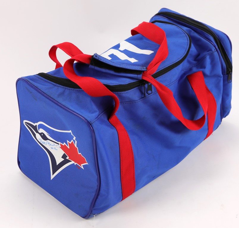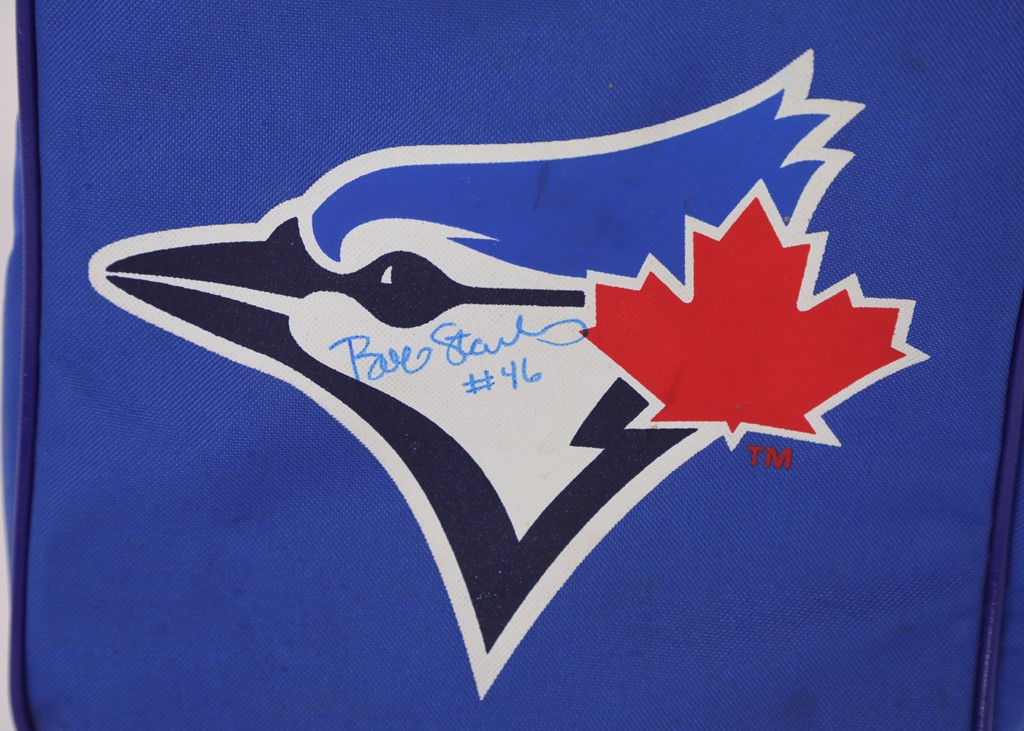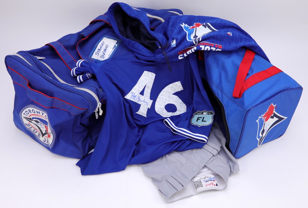 Here is a entire set of Toronto Blue Jays gear all worn and used by Bob Stanley. Worn in spring training of 2017 while coach for the Blue Jays, this grouping includes pants, bags and a sweatshirt. All are signed (except for sweatshirt), show use and are completely authentic.